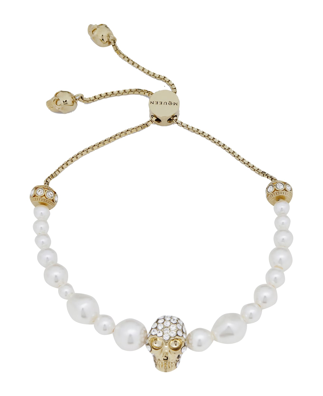 Mcqueen white Skull and Pearl Friendship bracelet, adaptable model, skull and pearls detail Composition: 100% Brass