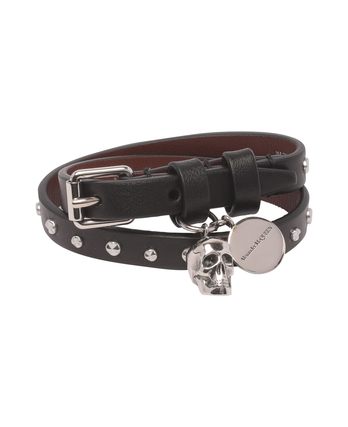 Alexander McQueen black Skull bracelet, adjustable and charm logo, buckle closure, studs Composition: 100% Calf Leather