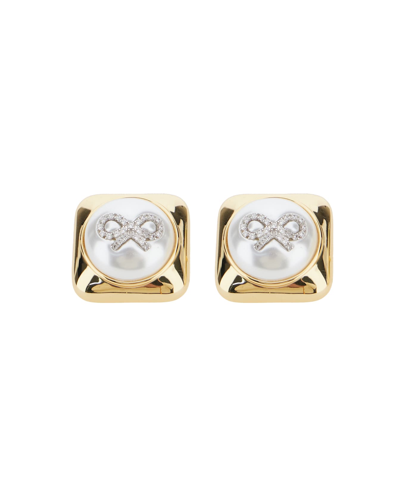 Gold-colored Earrings With Square Design And Bow Detail In Brass Woman
