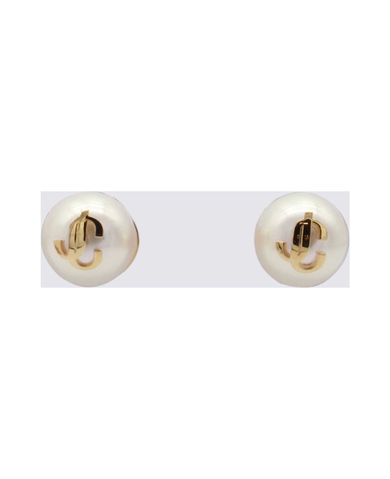 Pearl earrings from Jimmy Choo featuring pearl and gold tone logo. Composition: _, 100% Metallic Fiber