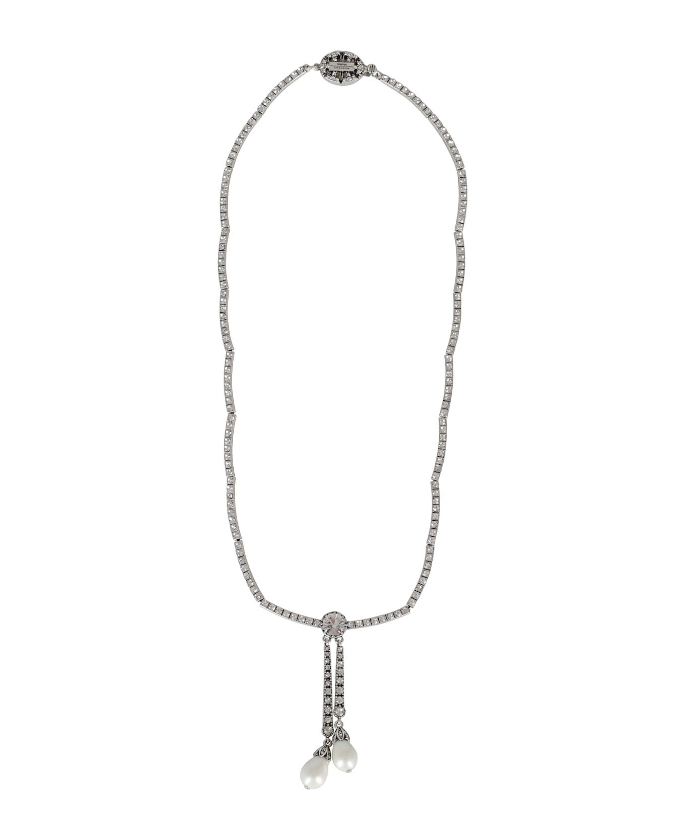 Duda necklace - Weekend Max Mara - Silver color - Made of rhinestones - Tennis pattern - Drop pearl pendant - Hook closure