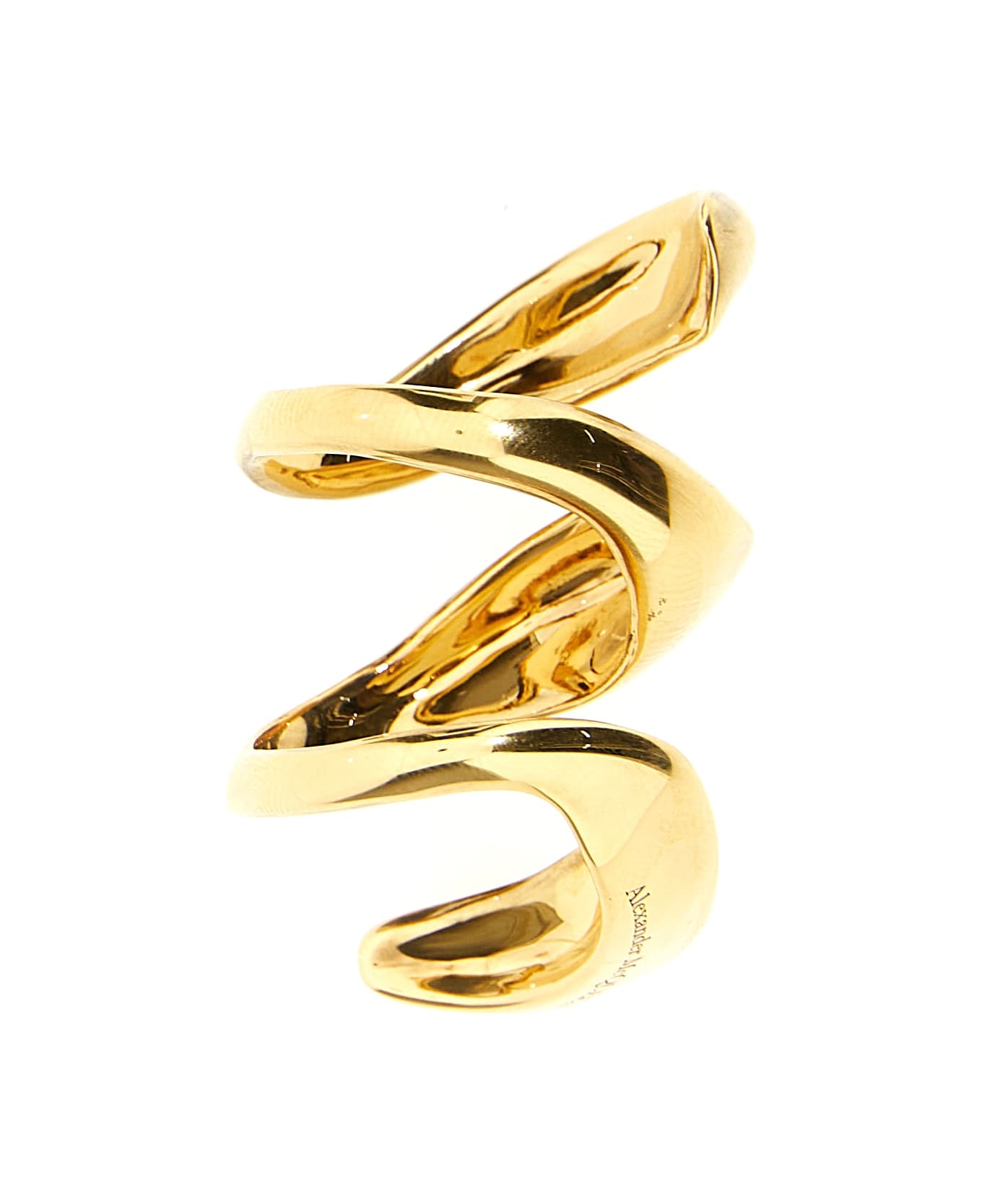 Twisted ring in gold metal with engraved logo. Composition: 100% brass