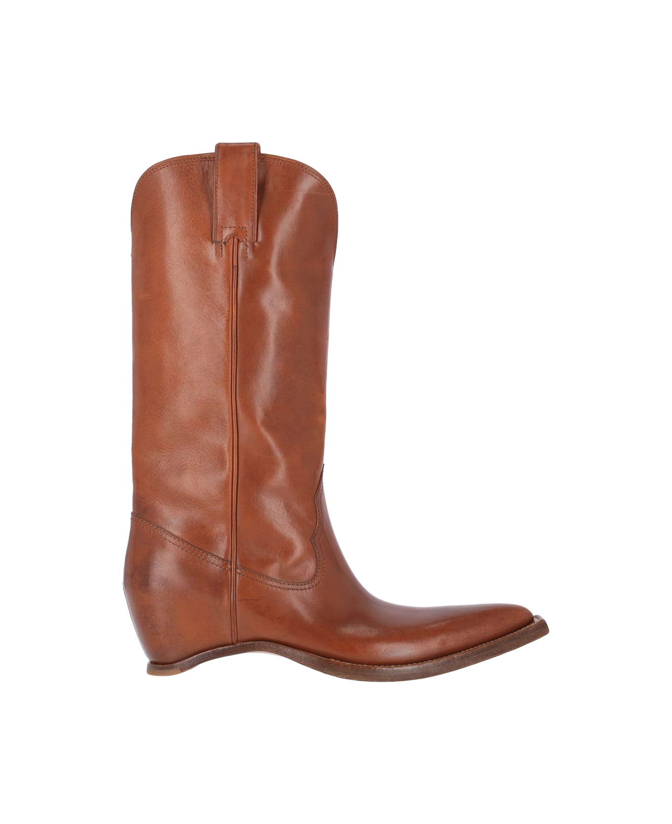 Maison Margiela 'Heel-Less' brown calf leather boots with square toe, heelless design, leather sole. Composition: 100% Calf Leather