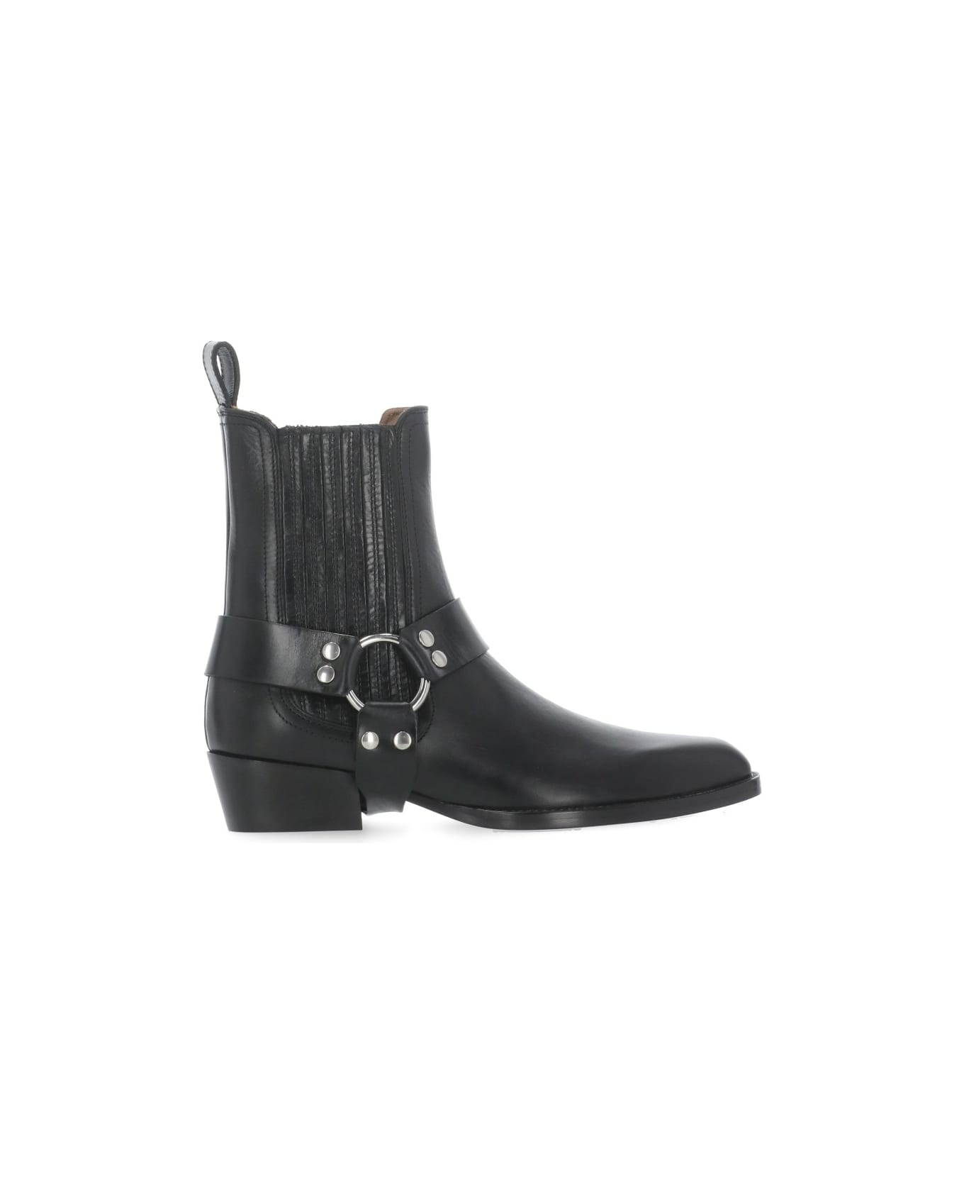 - Black Paris Texas leather cowboy ankle boots for woman - Square toe - Elastic side part - Side metal details - Heel: 3,5 cm Composition: 100% Calf Leather