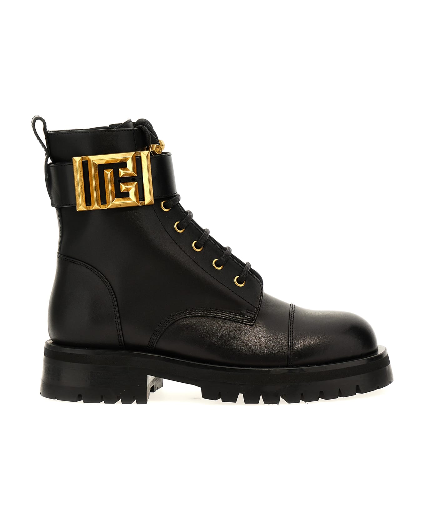 'Romy' leather amphibious boots with laces and side zip, logo strap, rubber sole. Composition: 100% calfskin leather