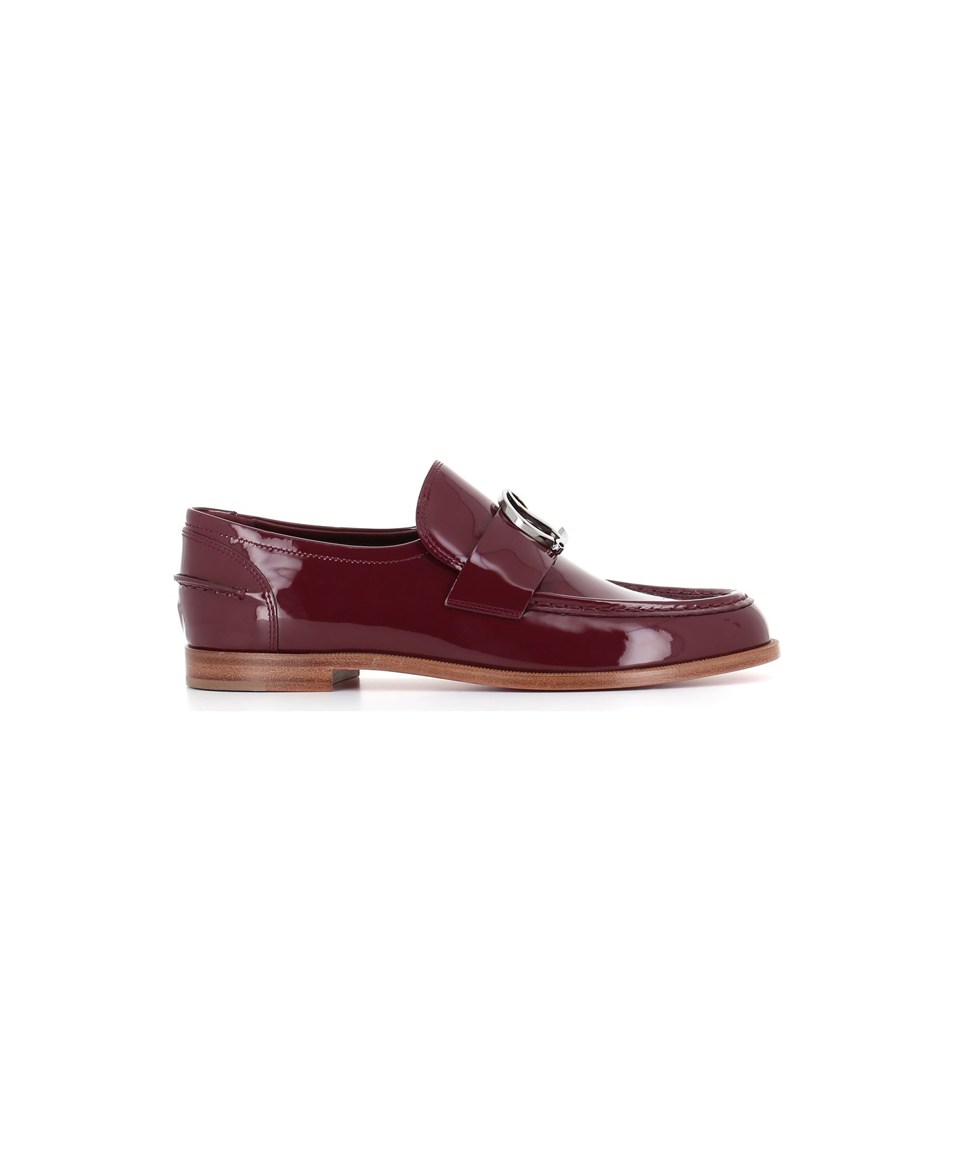 Burgundy patent leather Loafer from Christian Louboutin, featuring by graphic stitching, the tongue is adorned with a strap with CL monogram. Lined interior. Thin contrasting sole. Heel: 2 cm Composition: Vernice