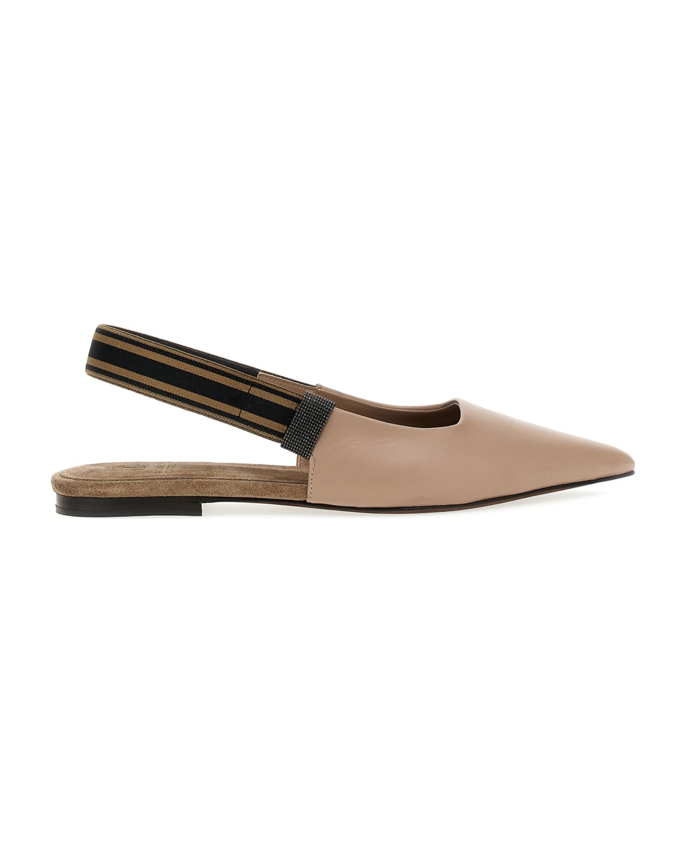 Slingback leather ballet flats with elastic ankle straps, 'Monile' detail and a leather sole. Composition: 100% calfskin leather