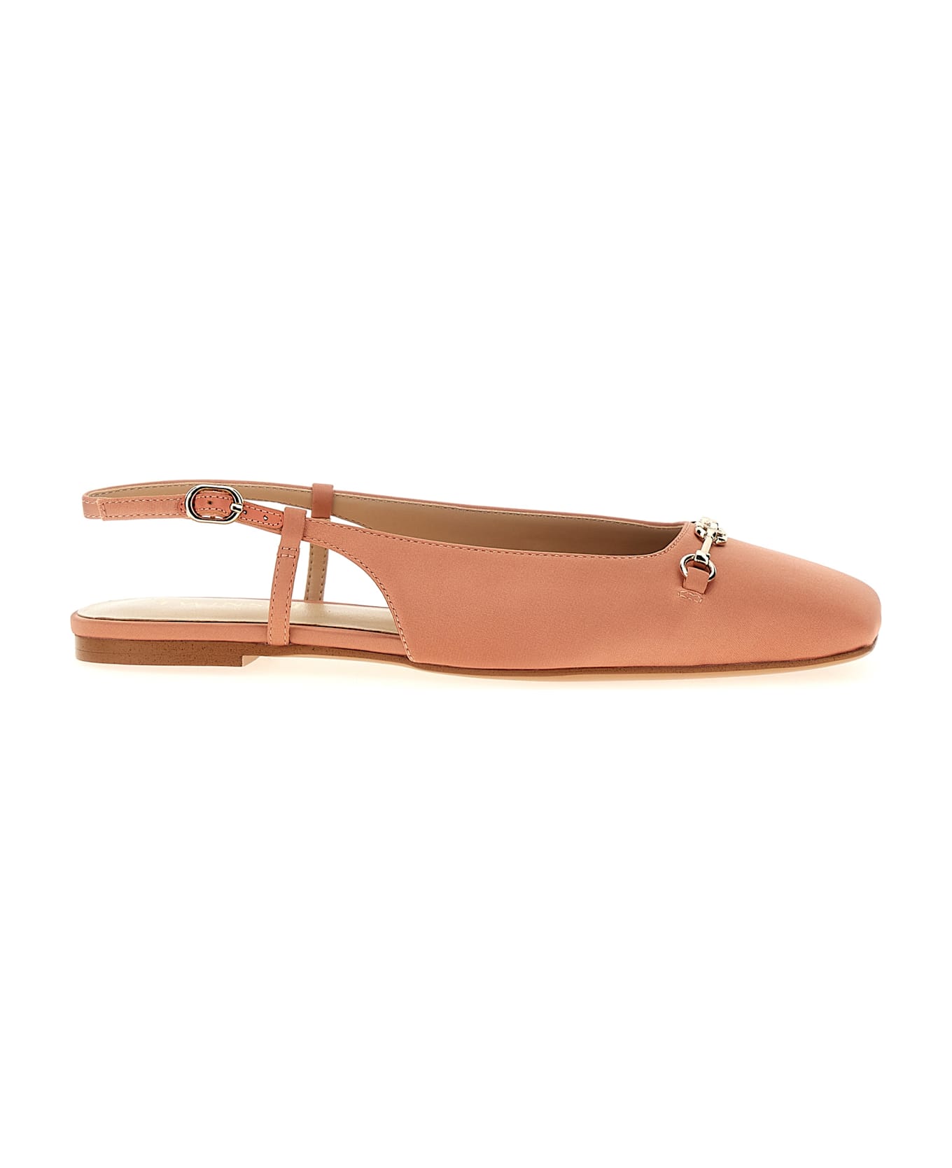 Satin-effect fabric slingbacks with metal Oval T detail at the front clamp, square toe, adjustable strap, rubber sole. Composition: 100% polyester