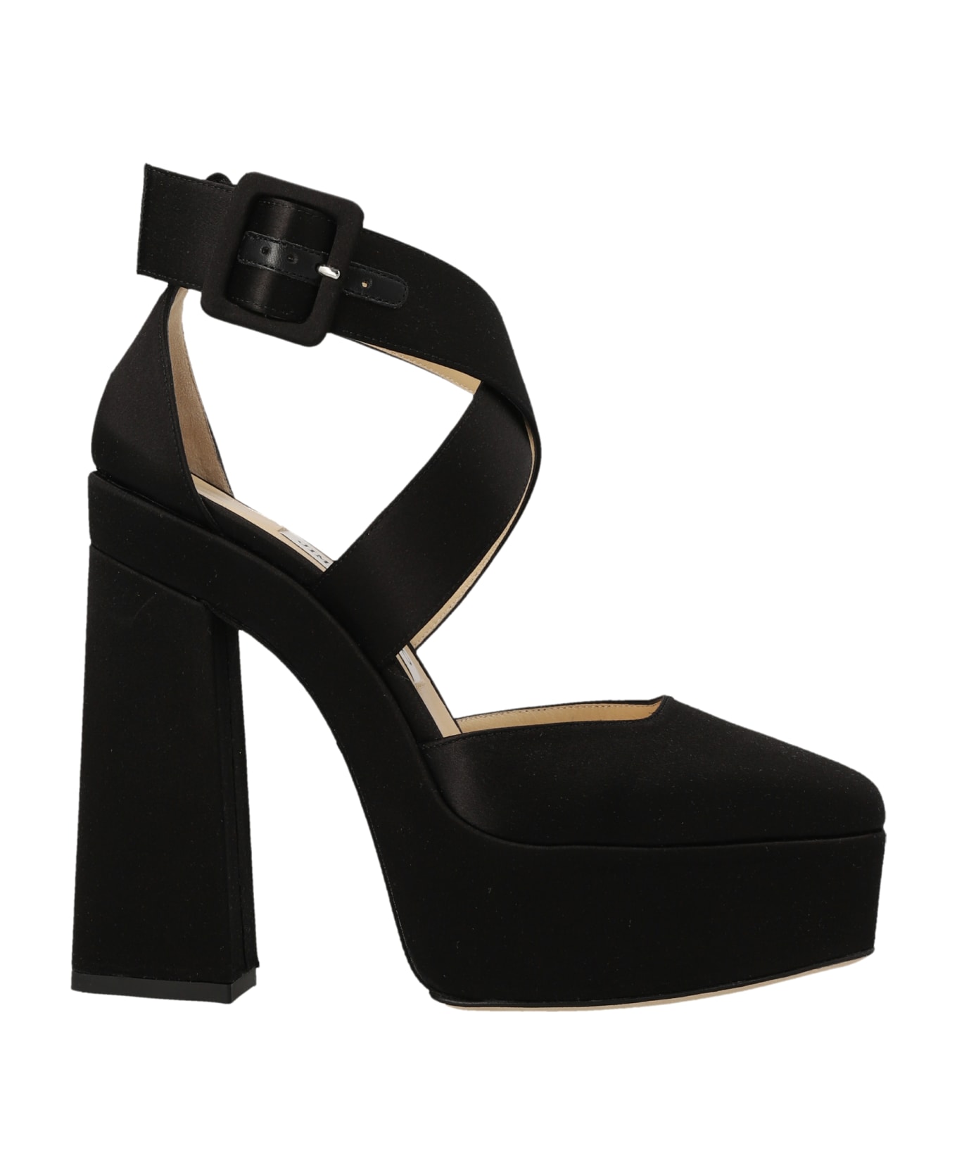 Gian' satin pumps with plateau, ankle strap and a squared toe. Composition: 98% textile 2% lamb leather