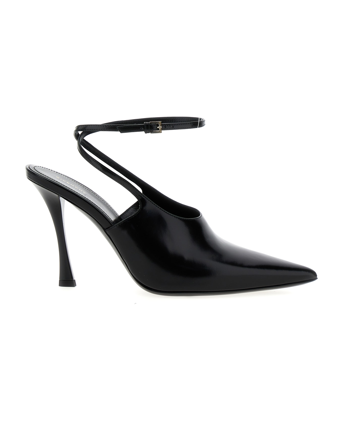 'Show' patent leather pumps with pointed toe and adjustable ankle strap. Composition: 100% calfskin leather (Bos Taurus)