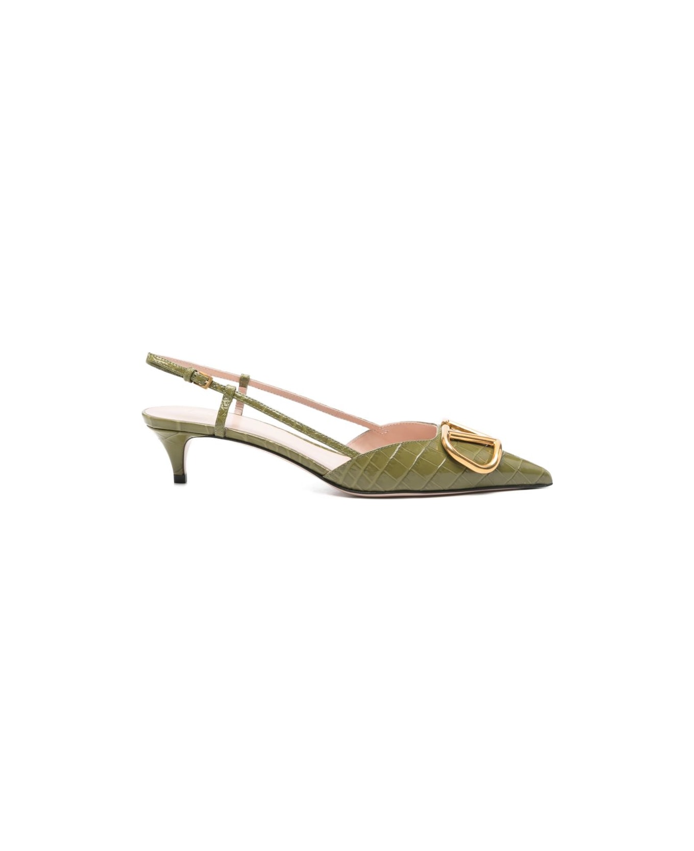 green embossed crocodile effect pointed toe gold-tone logo plaque kitten heel slingback strap Composition: Calf Leather, 100%