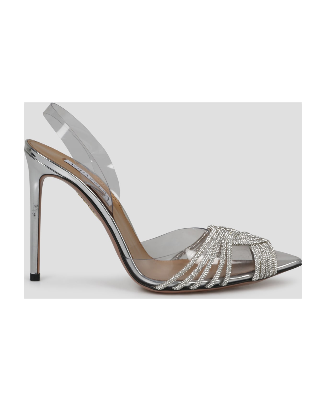 Aquazzurra pumps in PVC decorated with crossed rhinestone straps. - SS23