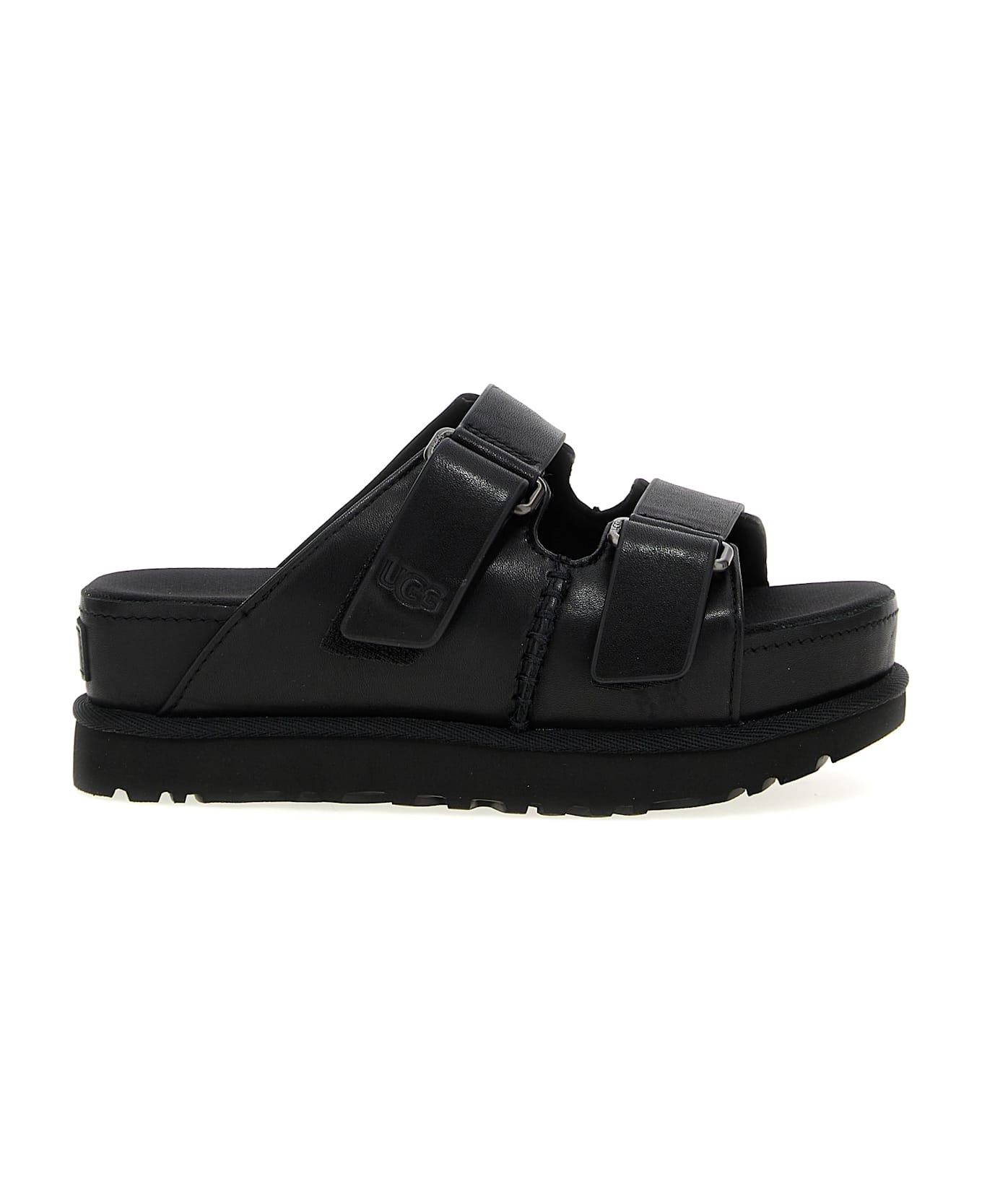 'Goldenstar Hi' leather slides, adjustable straps, contoured EVA inner sole, midsole and platform sole in EVA sugar cane.