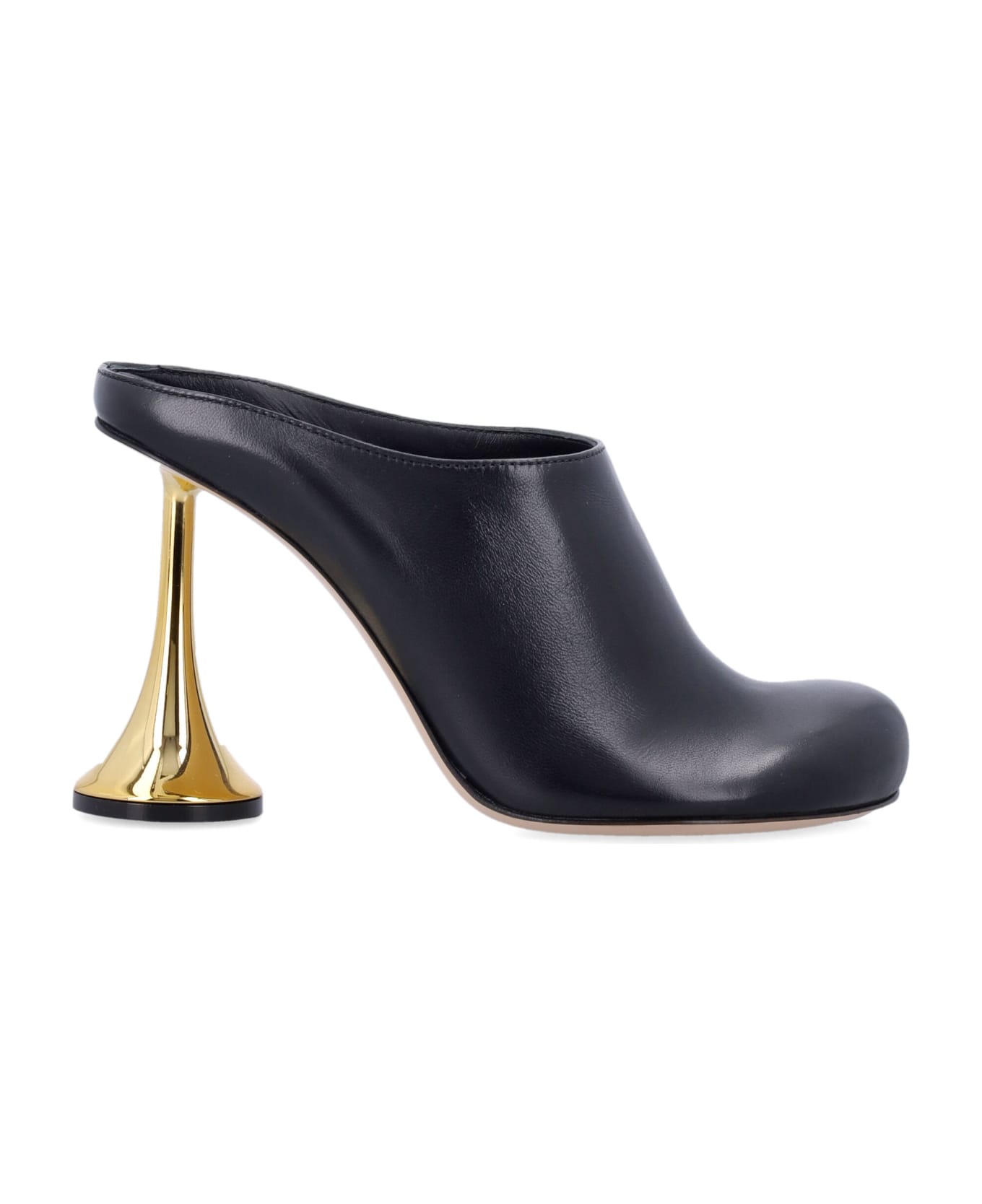 Orchestra Mules By Coperni. Featuring: Leather Upper Gold-tone Sculptural Heel Round Toe Design Leather Sole