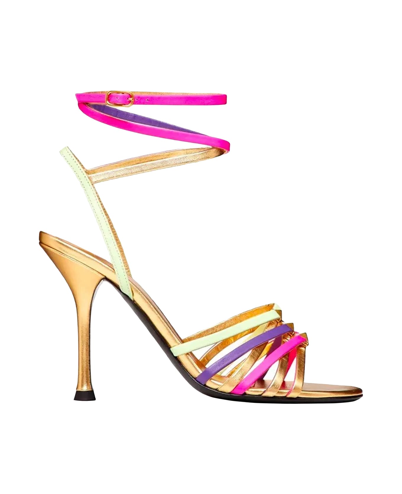 Leather sandals with iconic sandals - Adjustable Ankle Strap - Multicolor Details - Stiletto Heel - Made In Italy - Leather - External : Leather