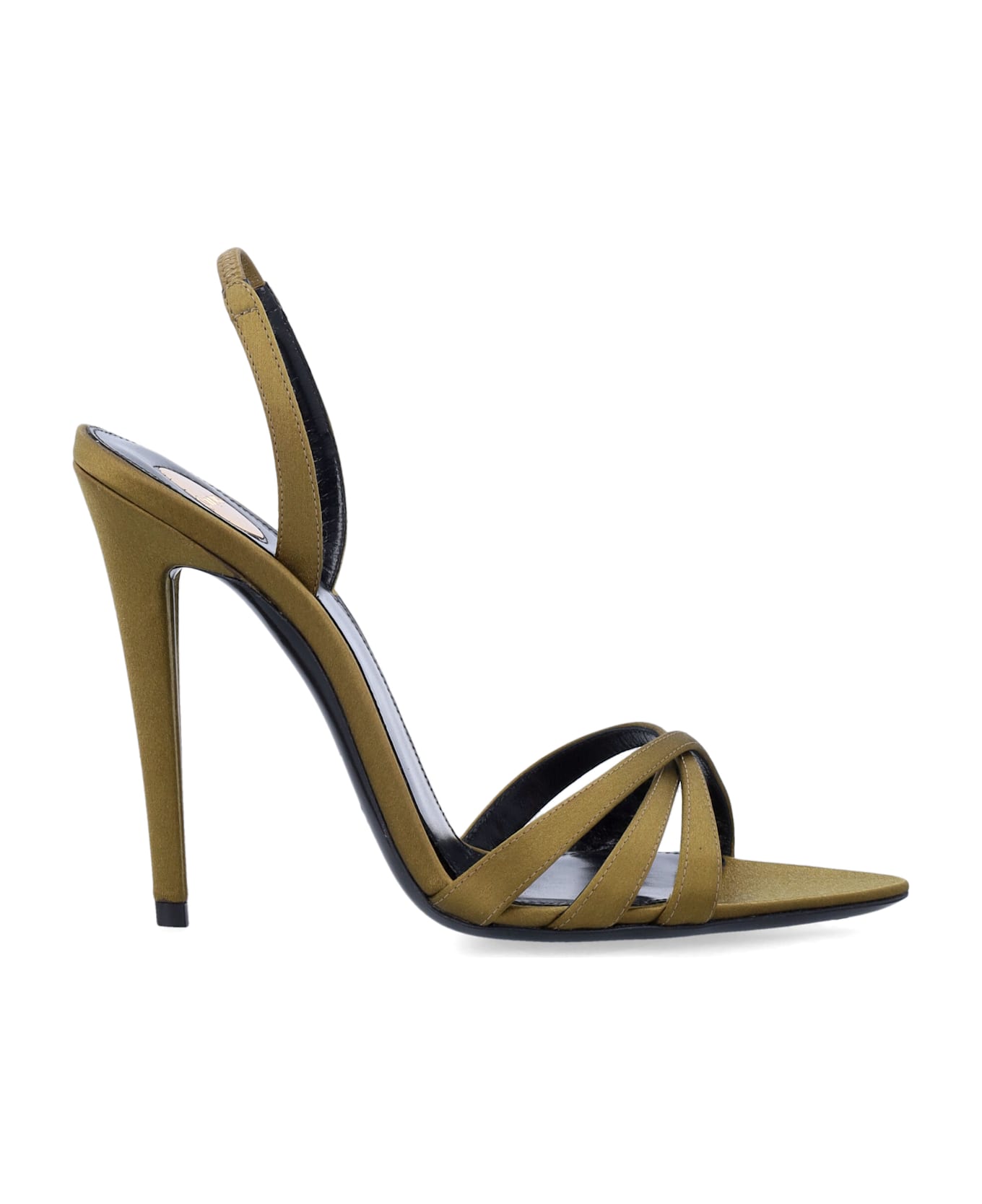 The Saint Laurent Kate Sandals Are Crafted From Certified Silk And Viscose Satin Crepe, Featuring A Crisscross Almond Toe And A Sleek Stiletto Heel. The Elasticized Slingback Strap Ensures A Secure Fit, While The Round Metal Plaque Engraved With The Saint Laurent Logo Adds A Refined Signature Touch. Certified Silk And Viscose Satin Crepe Crisscross Almond Toe Design Stiletto Heel Leather Sole Elasticized Slingback Strap Metal Logo Plaque Heel: 11 Cm