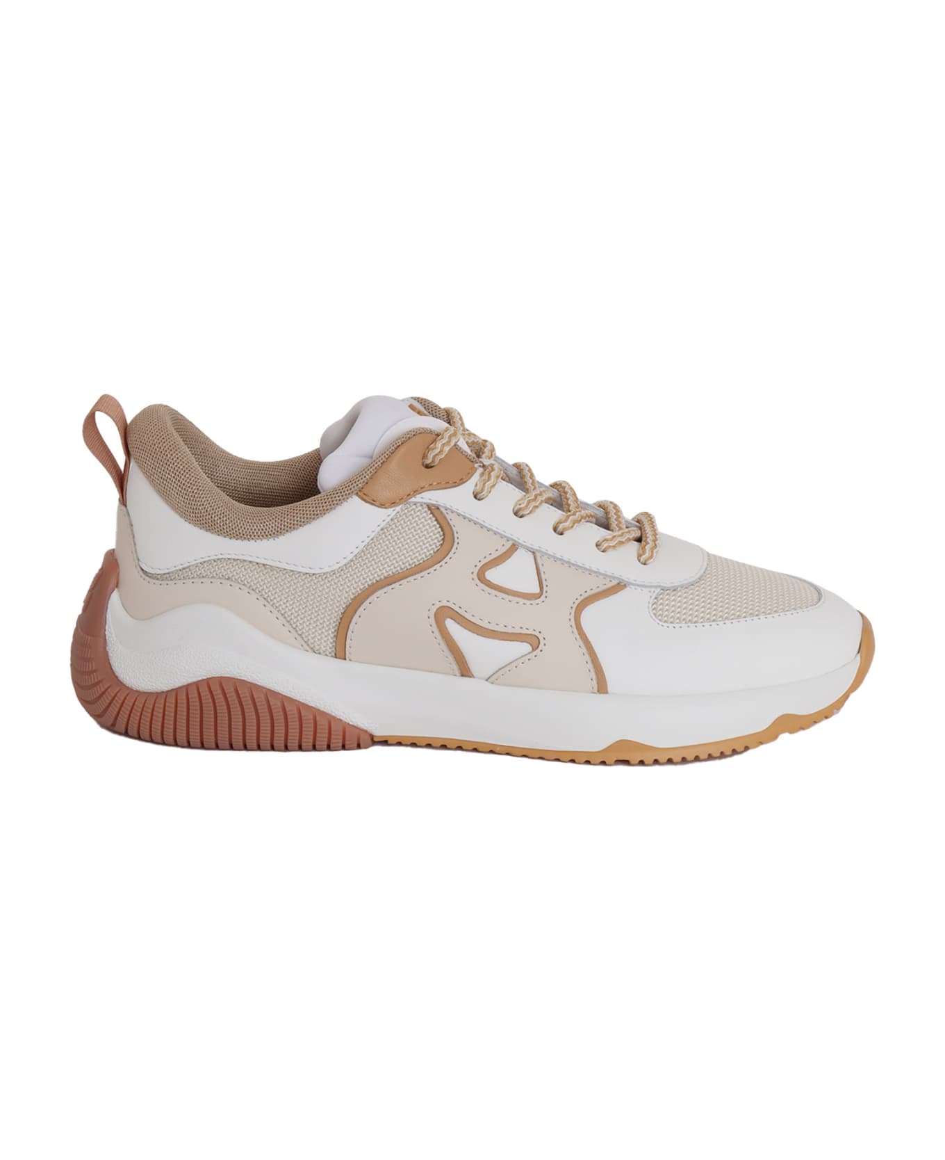 Smooth leather sneakers, technical fabric inserts, scuba-effect details, wavy H in smooth leather, 8 mm memory foam fussbett, rubber sole Sole: 3. 5cm