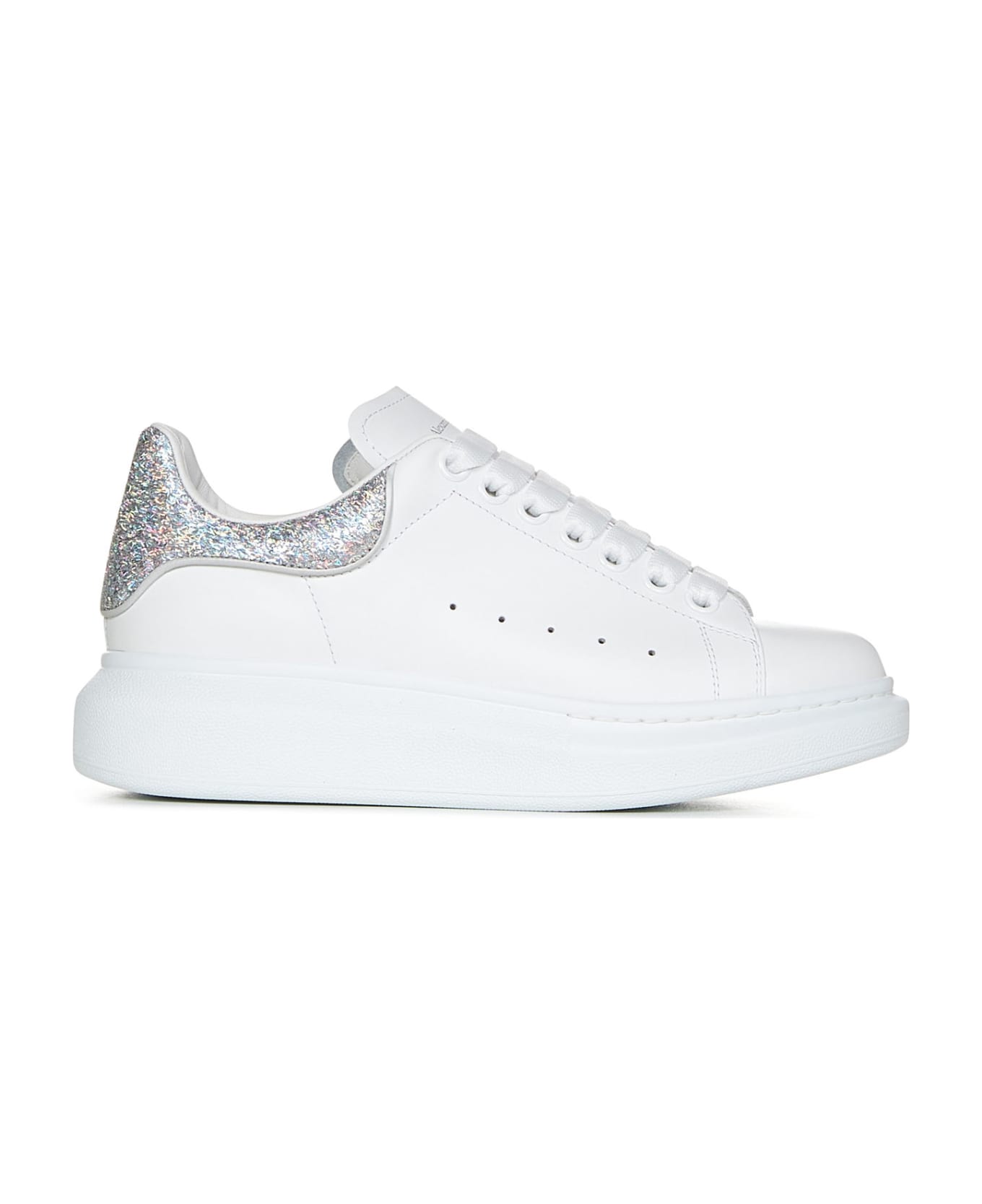 Silver-toned. holographic glitter heel counter; Silver Alexander McQueen signature at tongue