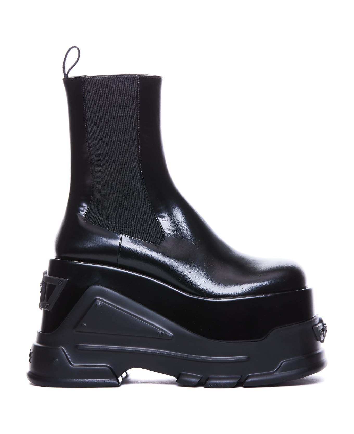 Versace blak Medusa Anthem platofm boots, leather upper, round toe, tone on tone logo on the back, platform model Composition: 100% Calf Leather / Rubber Sole
