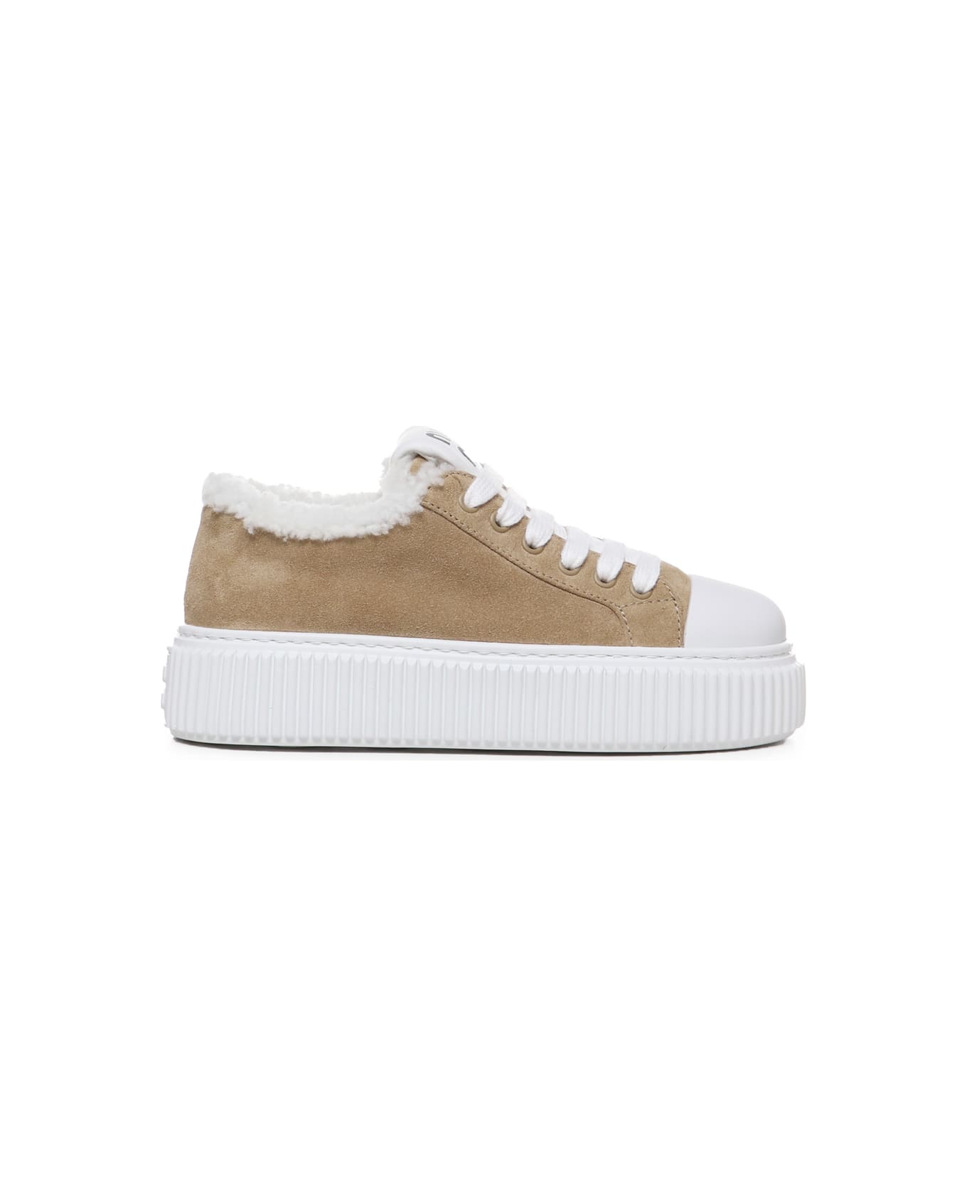 Ecru' Sneakers In Suede Leather from Miu Miu