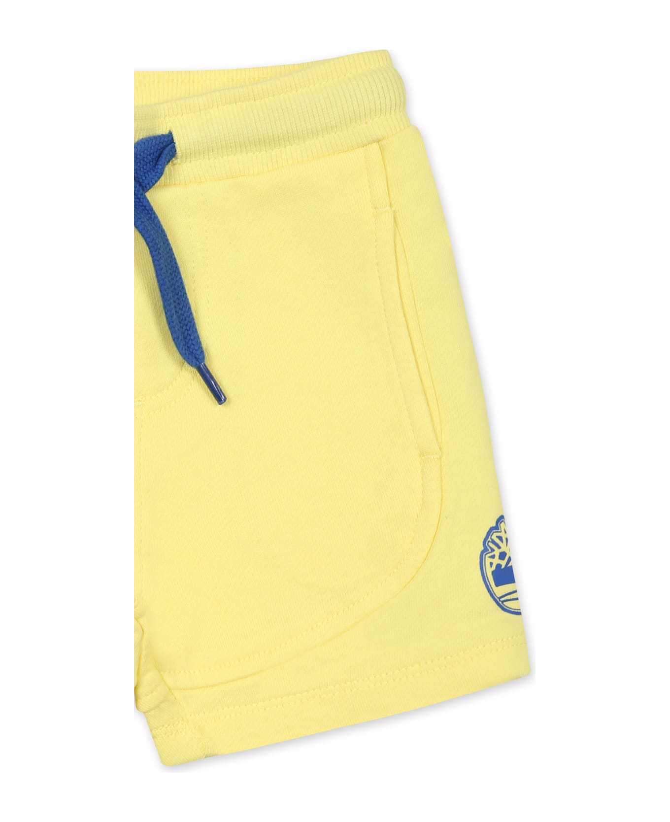 Yellow shorts in organic cotton blend, brushed, with elasticated waist, drawstring and side pockets. They are embellished with a tree on one side.