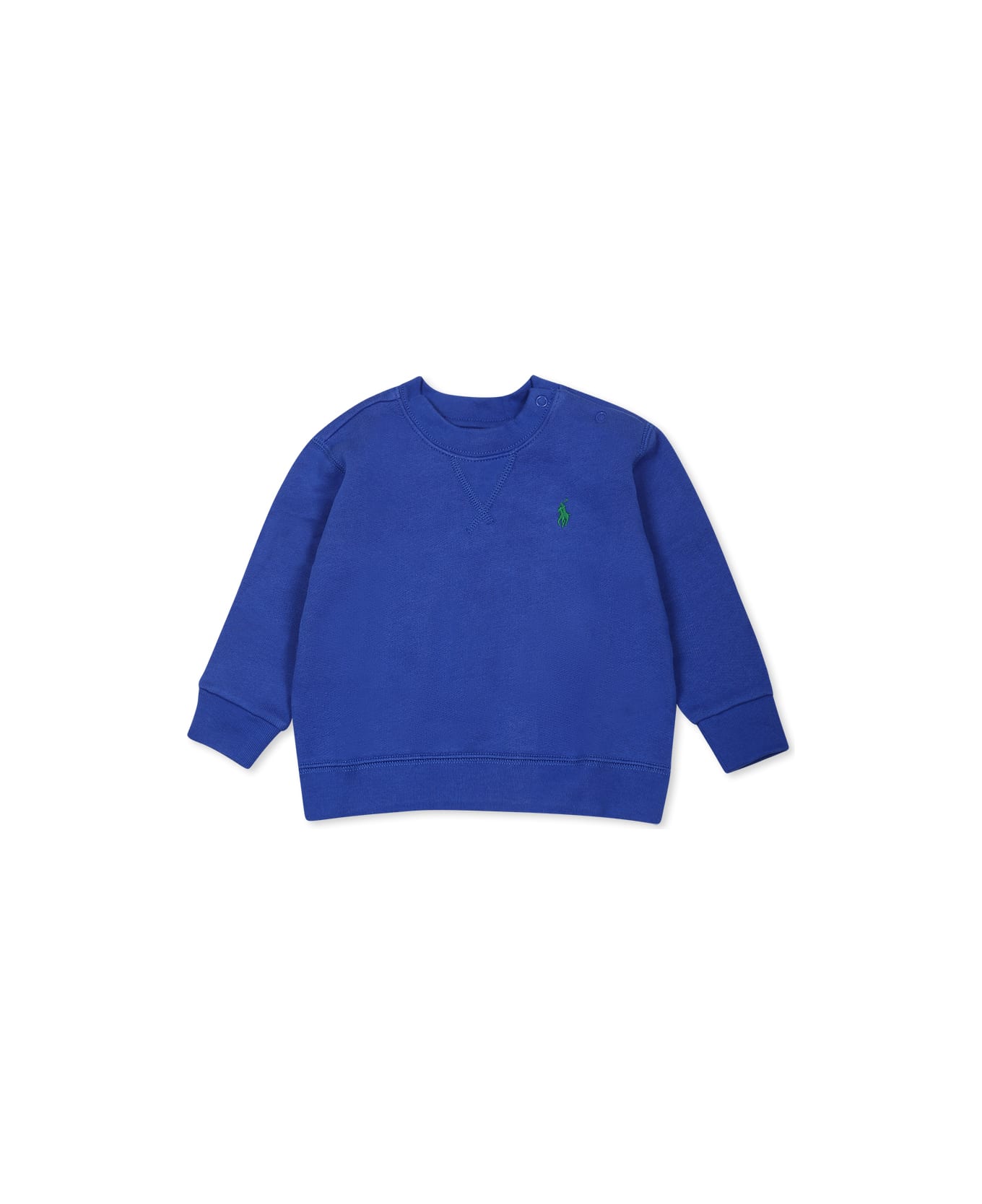 Blue sweatshirt in a cotton blend, long sleeves, with a crew neck, ribbed cuffs and hem and a snap button fastening on the shoulder. It is embellished with iconic green pony embroidered on the chest.