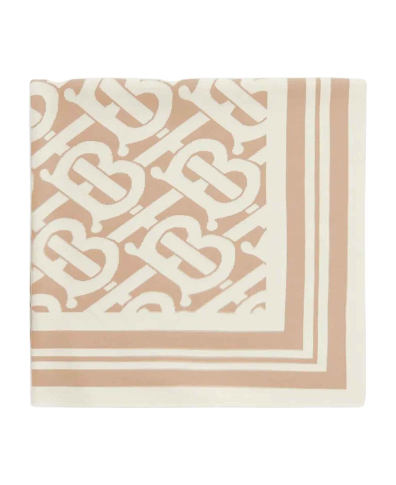 Beige blanket unisex. Stretch design, monogram pattern, logo patch on the front, striped edge and square shape. Silk 48%, Cotton 46%, Polyamide 4%, Elastane 2%