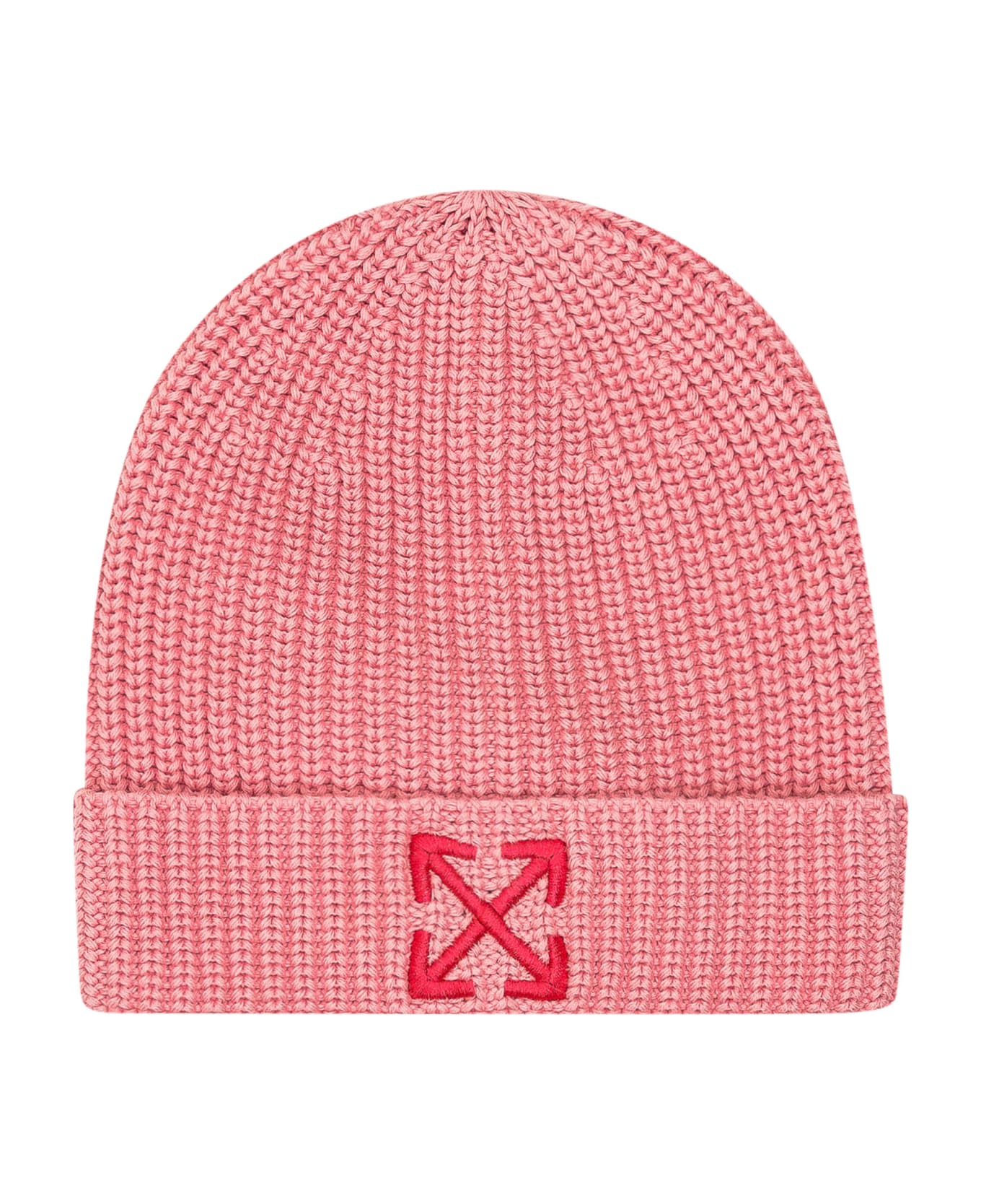 Pink ribbed cap. Arrow logo embroidered on the front.