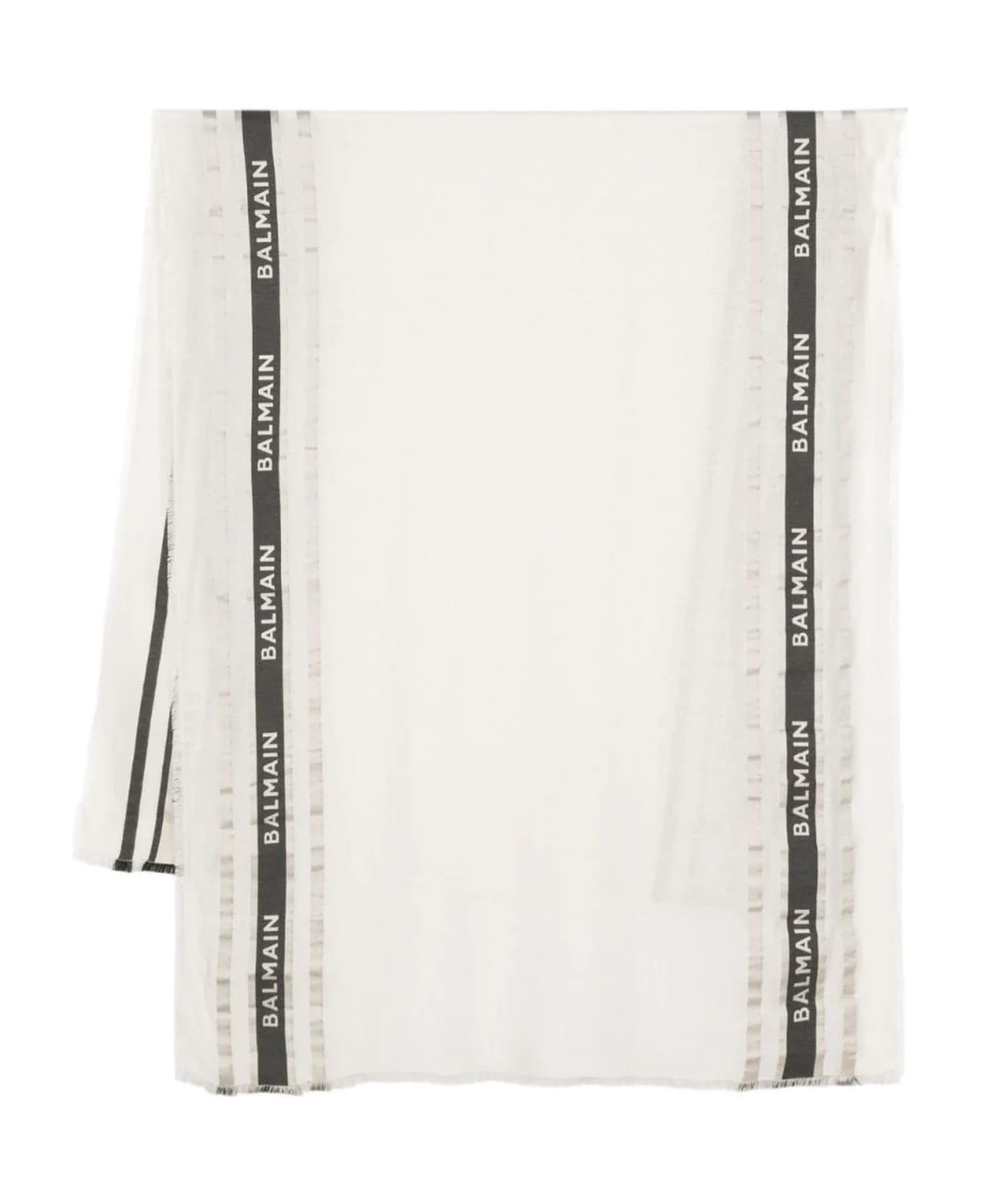 White and black scarf, logo embellishment, side stripe detailing, frayed edge Composition: Viscose, 79% , Polyester, 21%