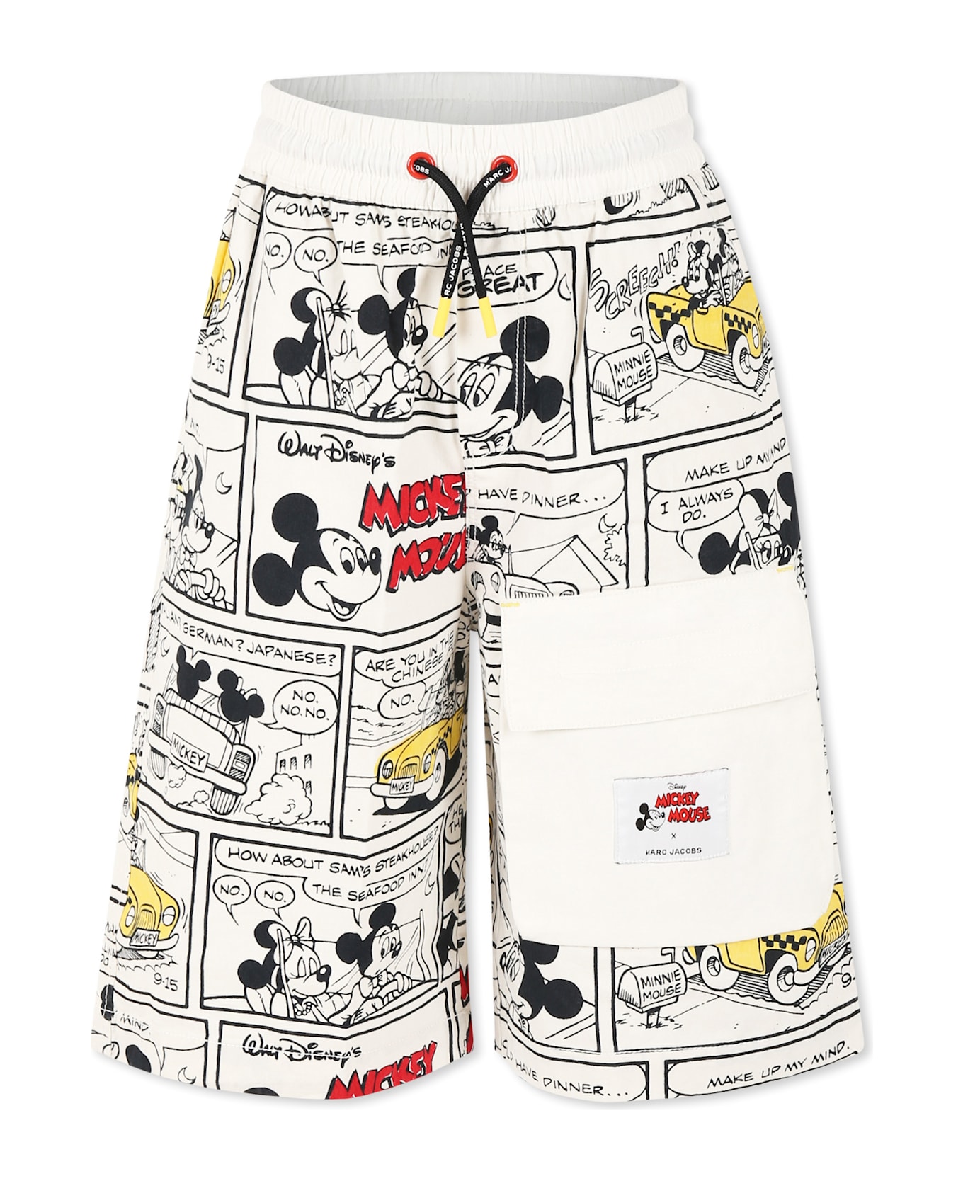 Ivory cotton shirt, short sleeves, lapel collar and front button closure. It is decorated with an all-over Mickey Mouse print and hand embroidery on the chest. This item is an exclusive Disney x Marc Jacobs collaboration.