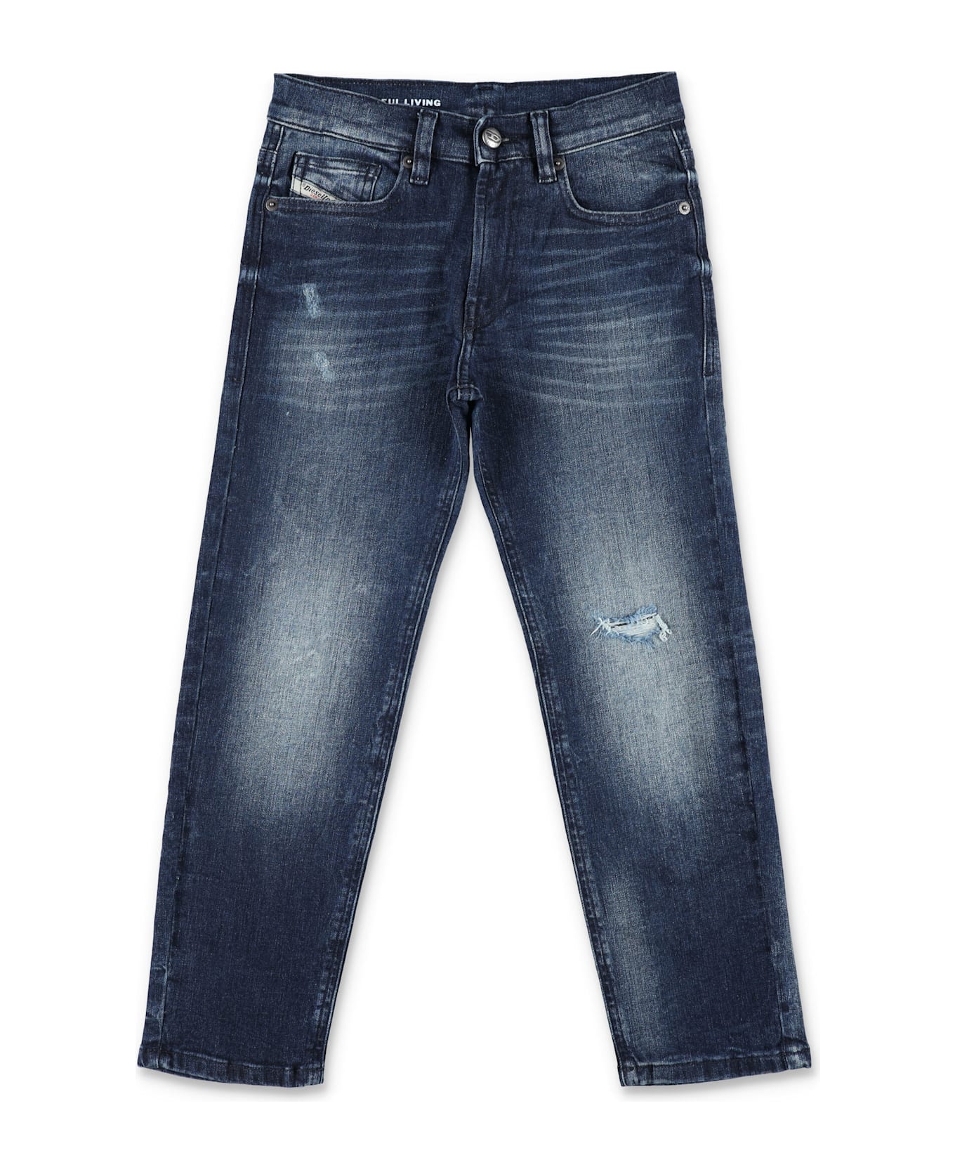 Crafted From Slightly Stretch Cotton Denim, The Diesel 2010-j Jeans Offer A Comfortable Fit With Authentic Vintage Appeal. The Design Features A Stone-washed Finish With Strategically Placed Tears For A Worn Effect, A Classic Five-pocket Layout, And The Iconic Diesel Patch At The Back. Slightly Stretch Cotton Denim