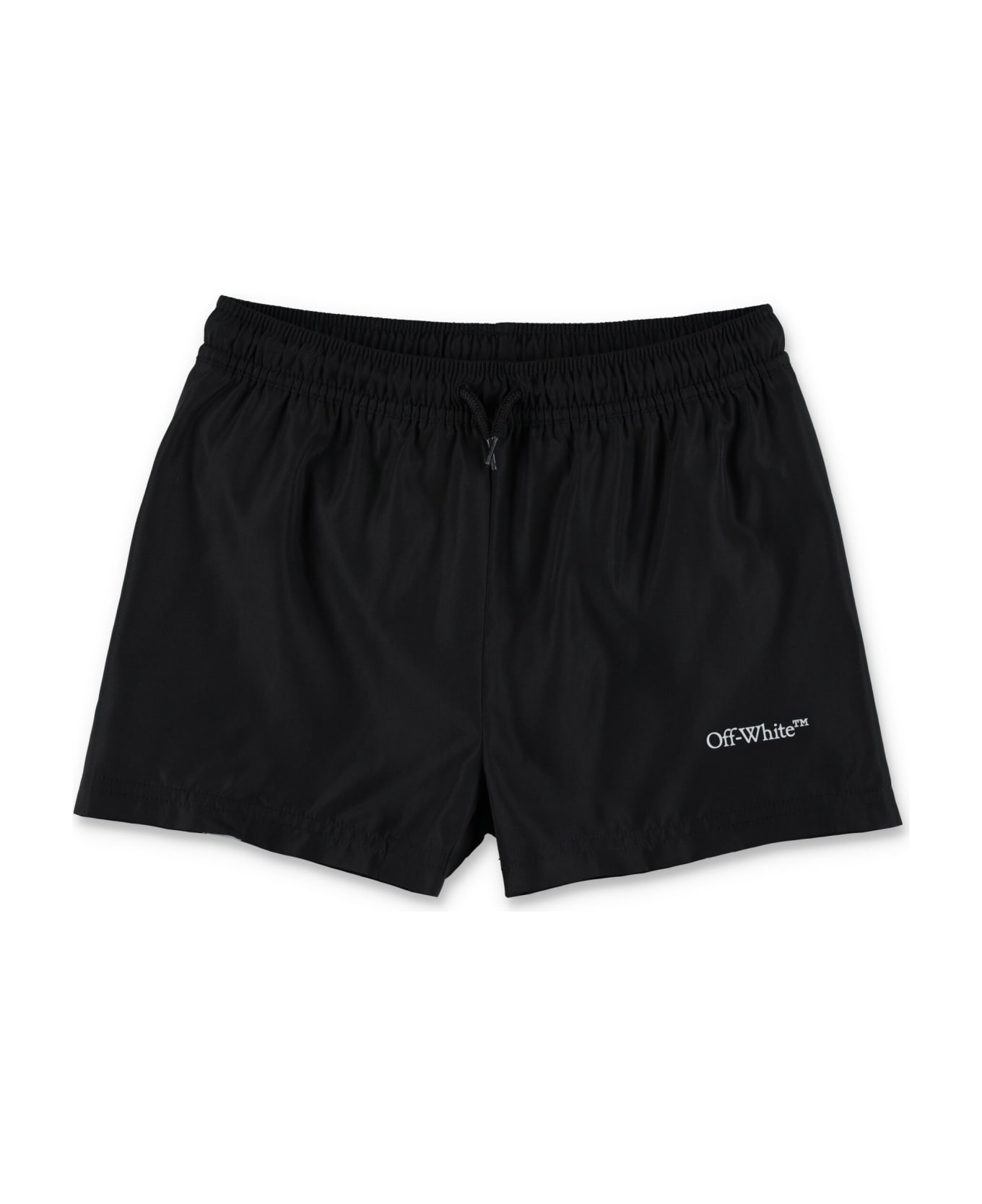 Scribble Swim Shorts By Off-white Kids. Featuring: Elasitc And Drawstring Waistband White Logo Print At Front Rear Patch Pocket Scribble Diag Motif Print At Back