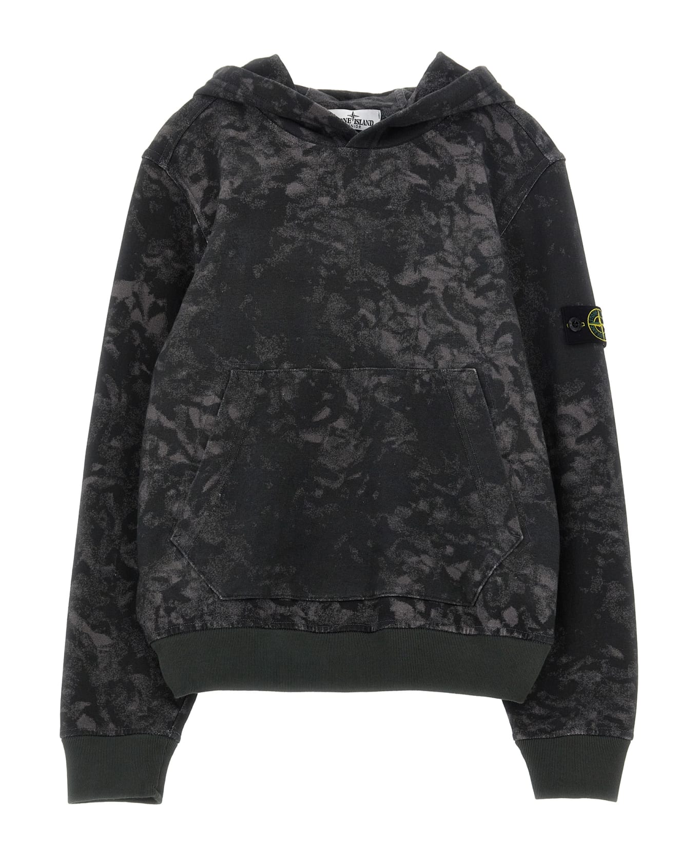 KIDS Tie-dye effect cotton hoodie, logo badge on the sleeve, kangaroo pocket, long cuffed sleeves.