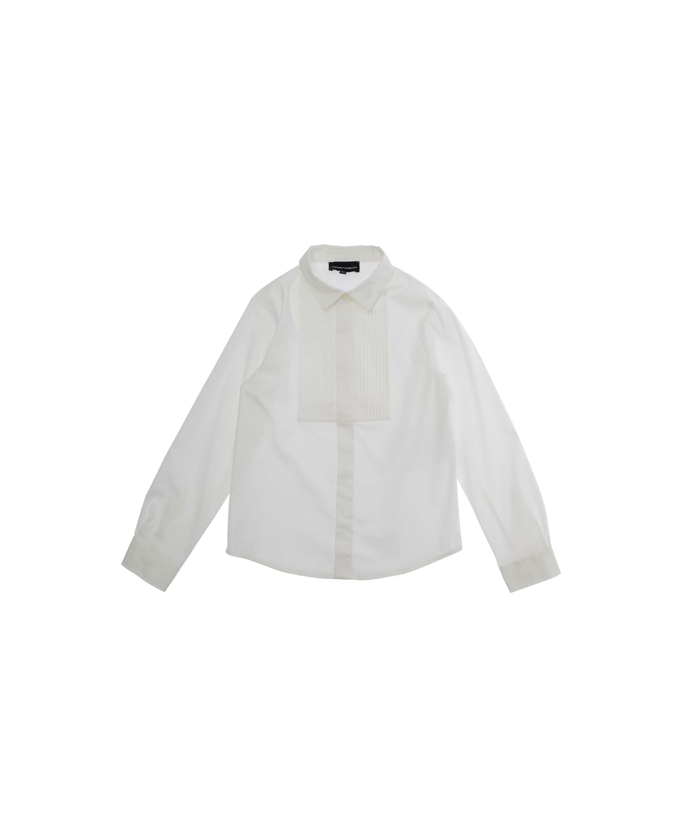White Shirt With Classic Collar And Ribbed Detail On The Front In Cotton Stretch Boy