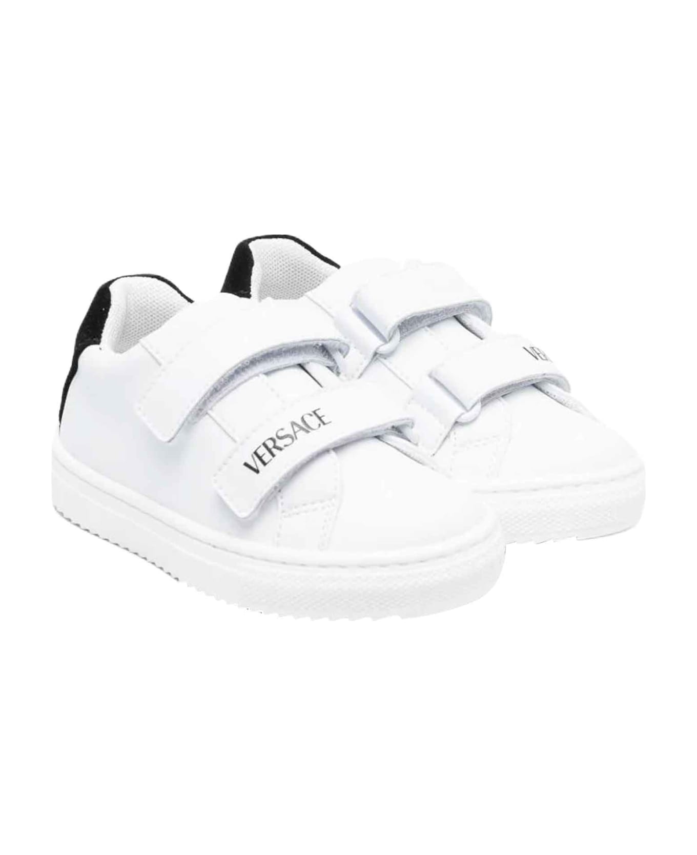 White sneakers boy kids. Round toe, velcro closure and logo print. Composition Exterior: 100% calf leather Lining: 100% fabric, 100% calfskin Sole: 100% rubber