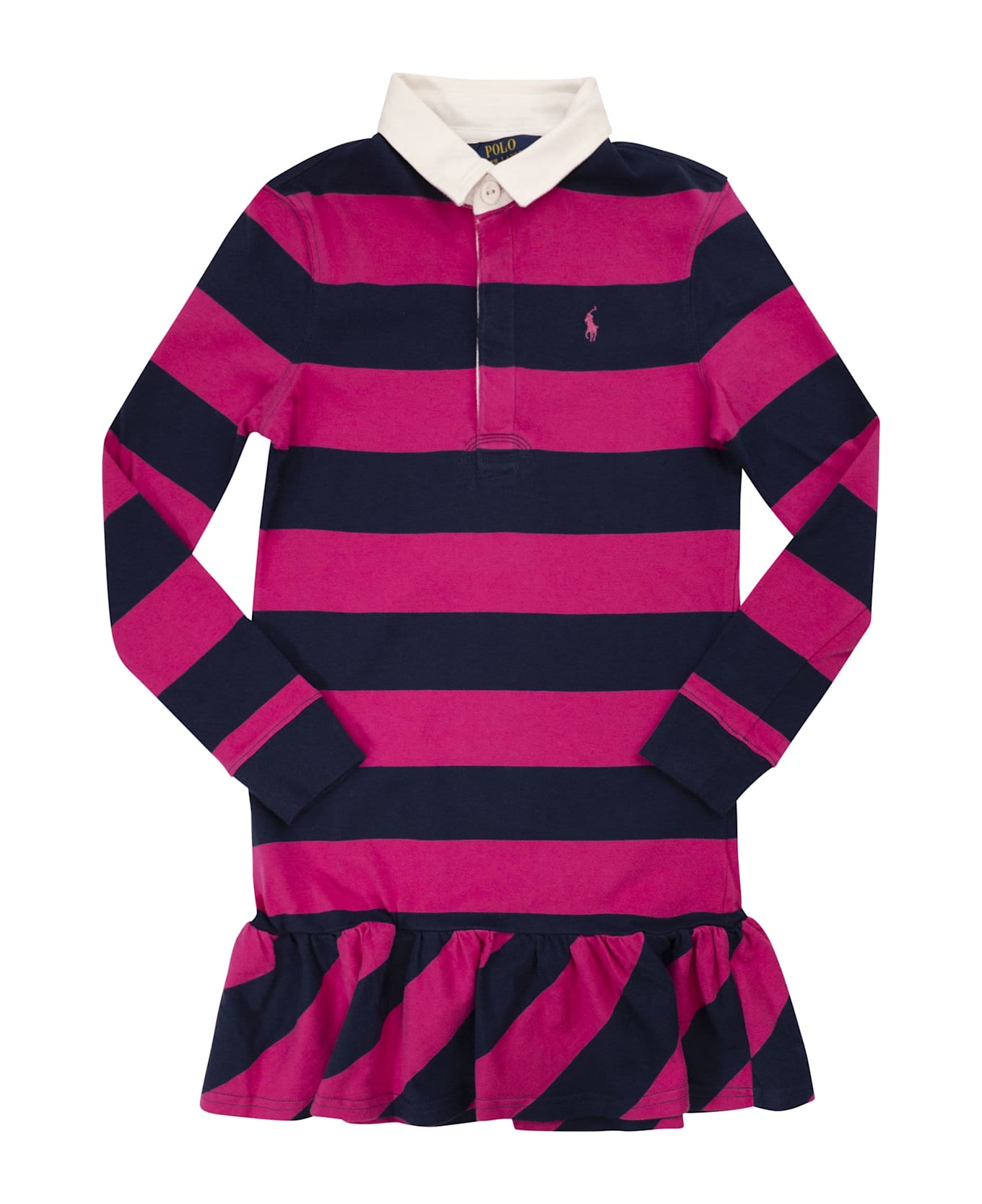 Crafted with breathable stretch piqué and an adorable low-rise silhouette, this dress is finished with our signature embroidered pony. - Low-rise silhouette. - Signature embroidered pony on the left side of the chest. - Ribbed polo collar. - Four-button closure. - Short sleeves with ribbed cuffs. - Skirt with ruffles. DESIGNER ID: 312950956 001