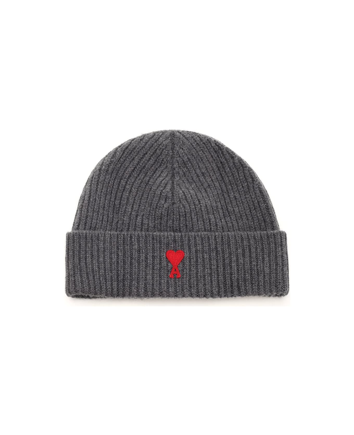 "Ami De Coeur" hat in grey wool with embroidered logo Composition: 100% wool