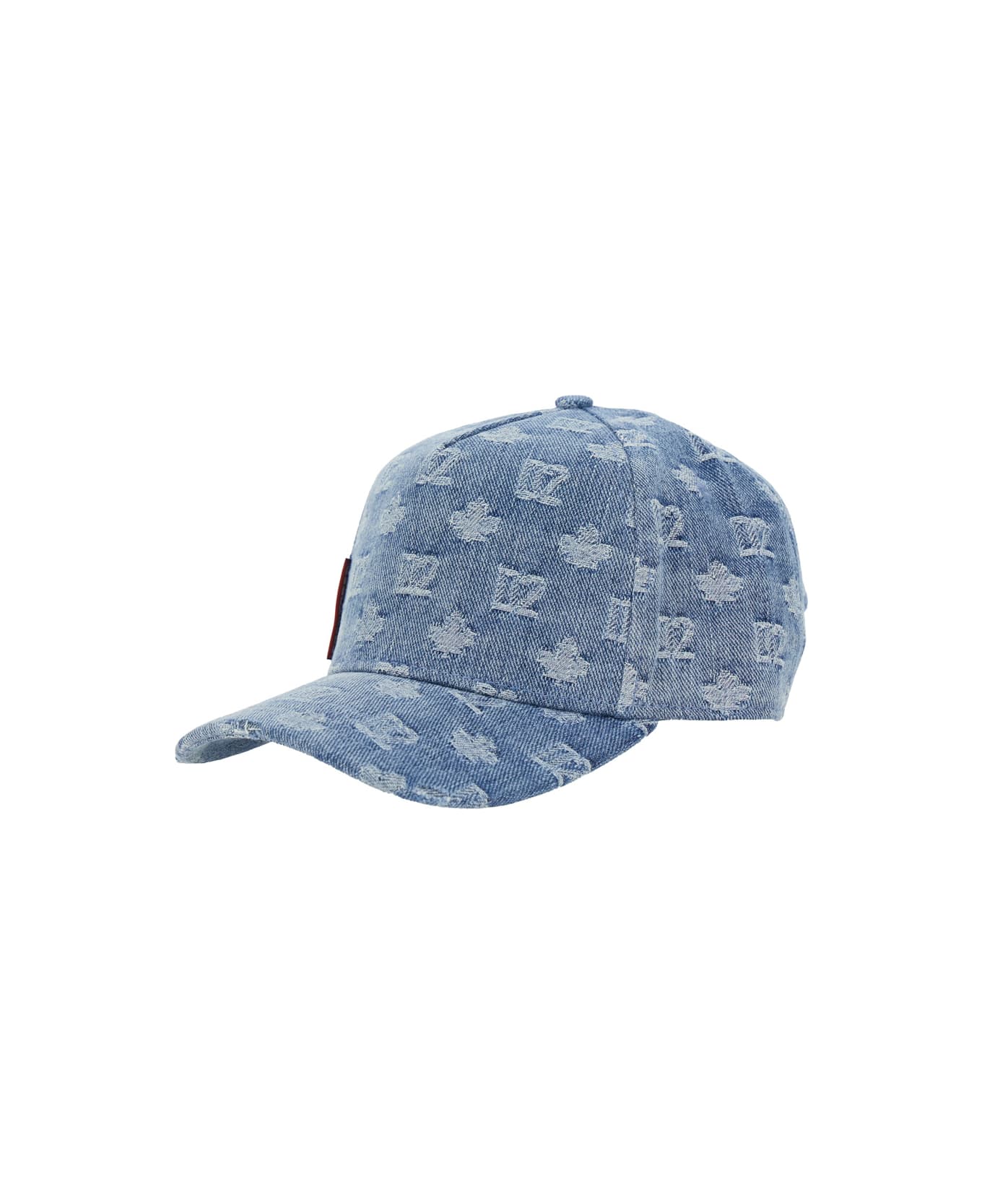 Light Blue Baseball Cap With All-over Logo In Denim Man