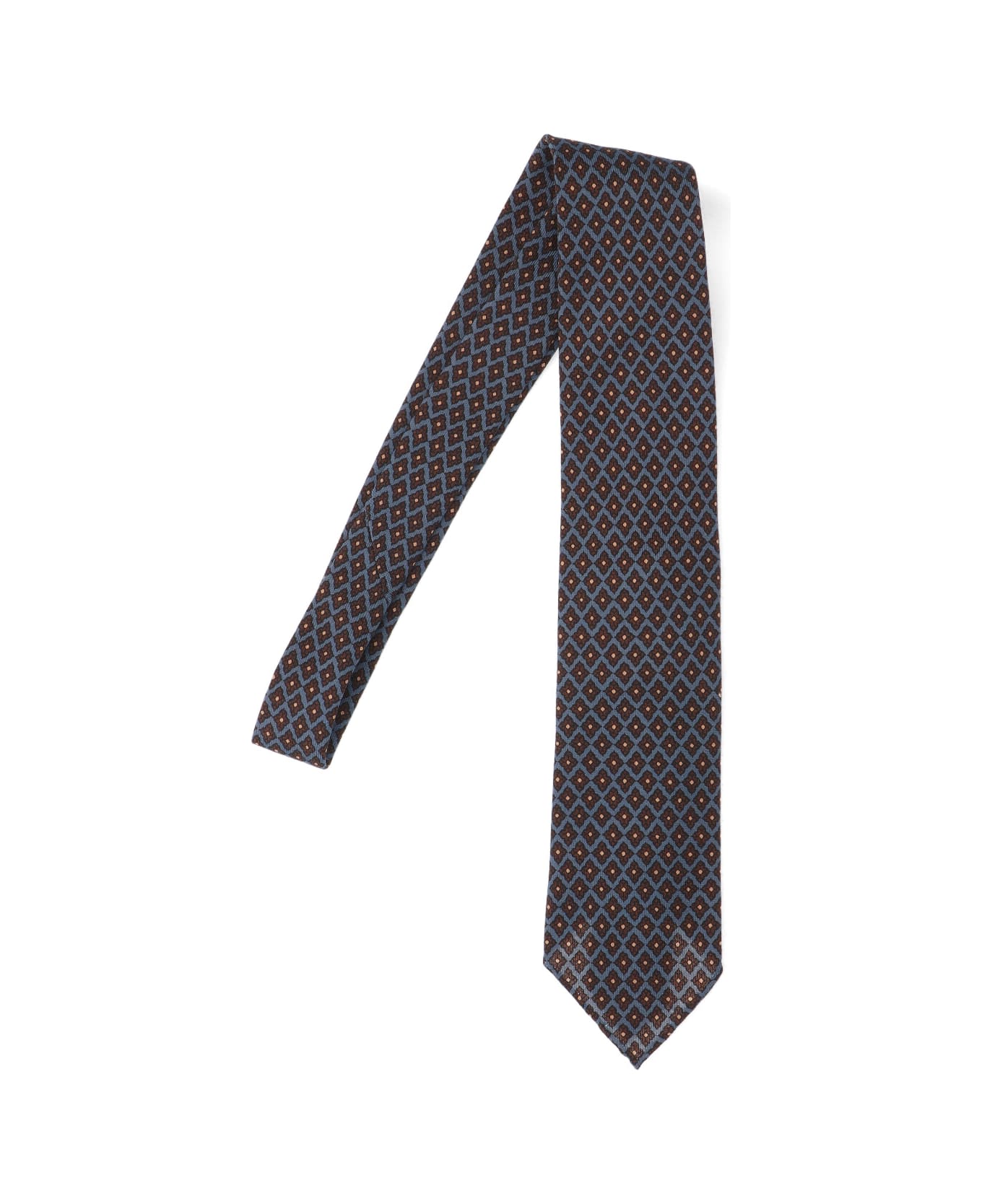 Cesare Attolini patterned tie in blue wool, multicolor geometric pattern, adjustable