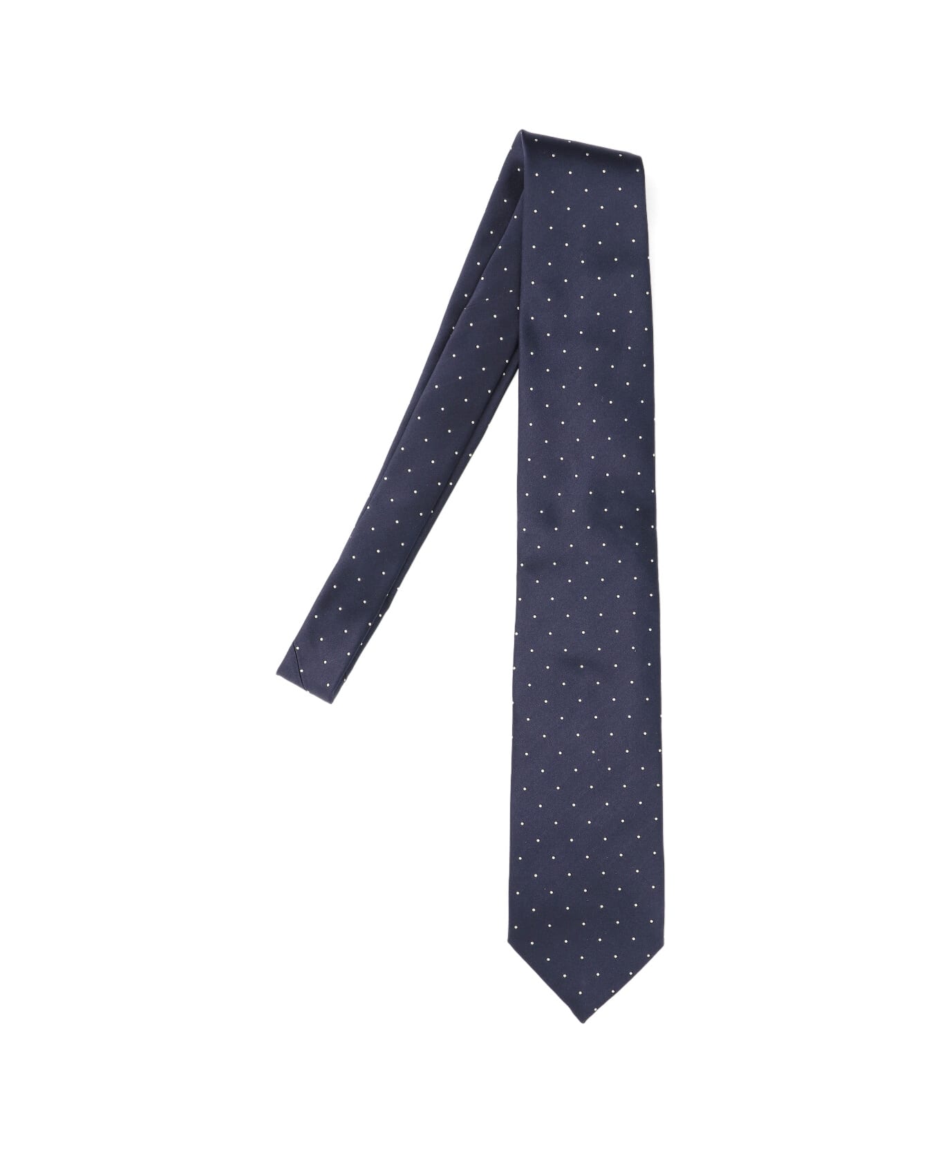 Tom Ford polka dot tie in blue mulberry silk with white polka dot detail, adjustable. Composition: 100% Mulberry Silk