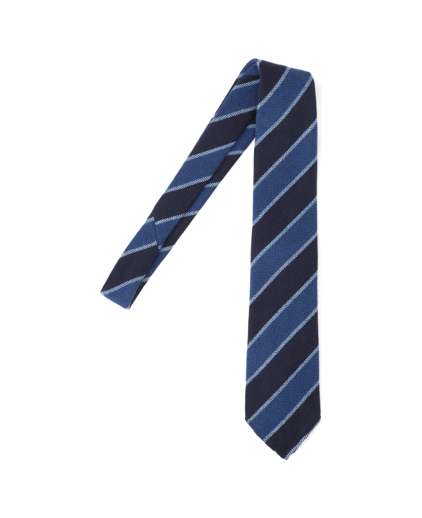Cesare Attolini striped tie in blue wool, dark shade, striped pattern with blue and white details, adjustable.