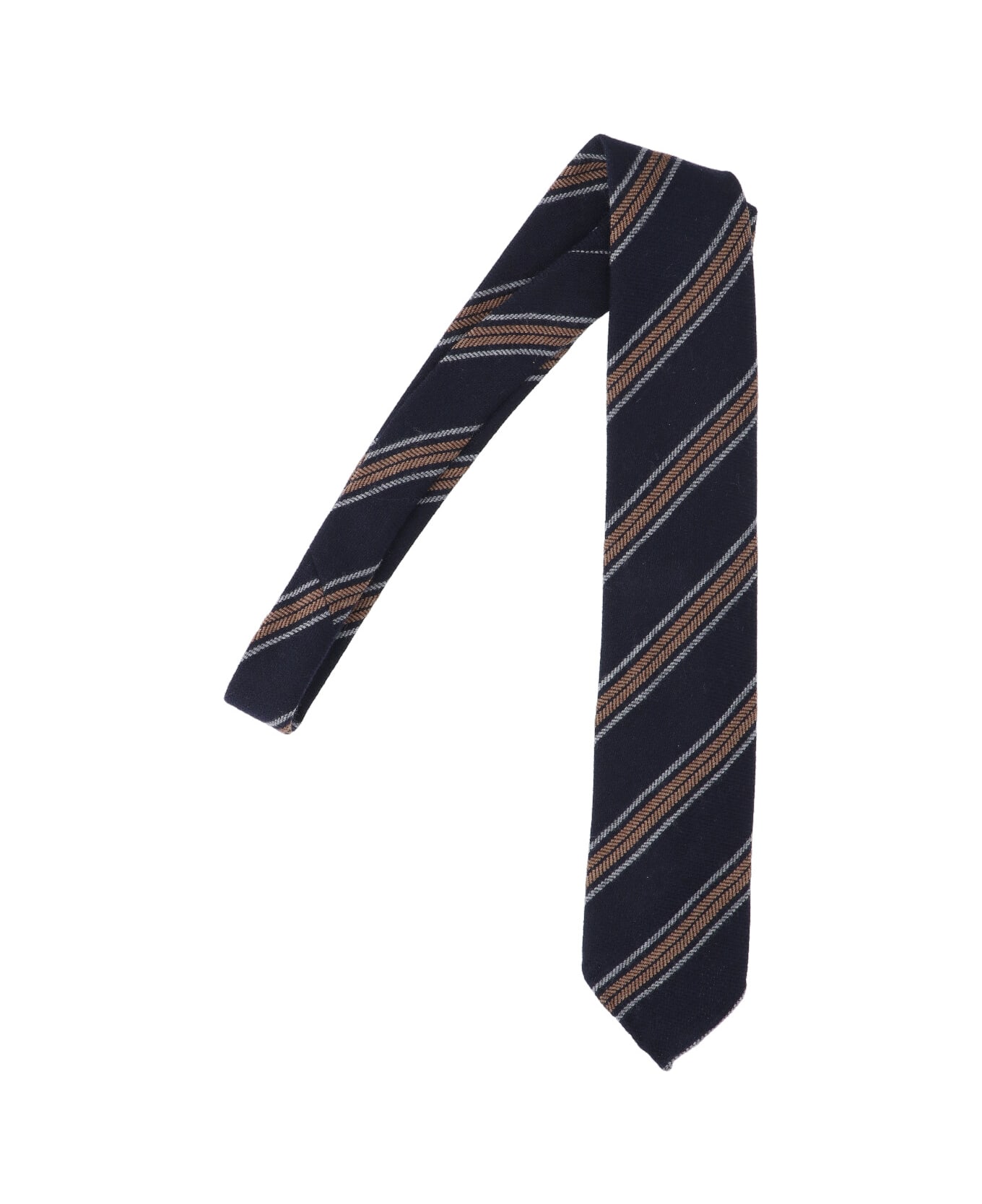 Cesare Attolini striped tie in blue wool with striped pattern with brown details, adjustable.