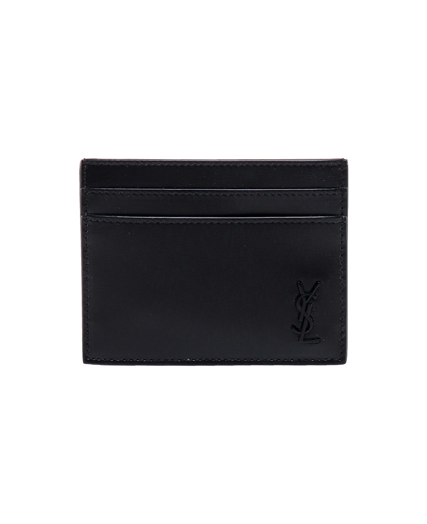 Leather card holder with frontal monogram - Five Compartments For Credit Cards - Frontal Logo - Stitched Profiles - Made In Italy - Leather