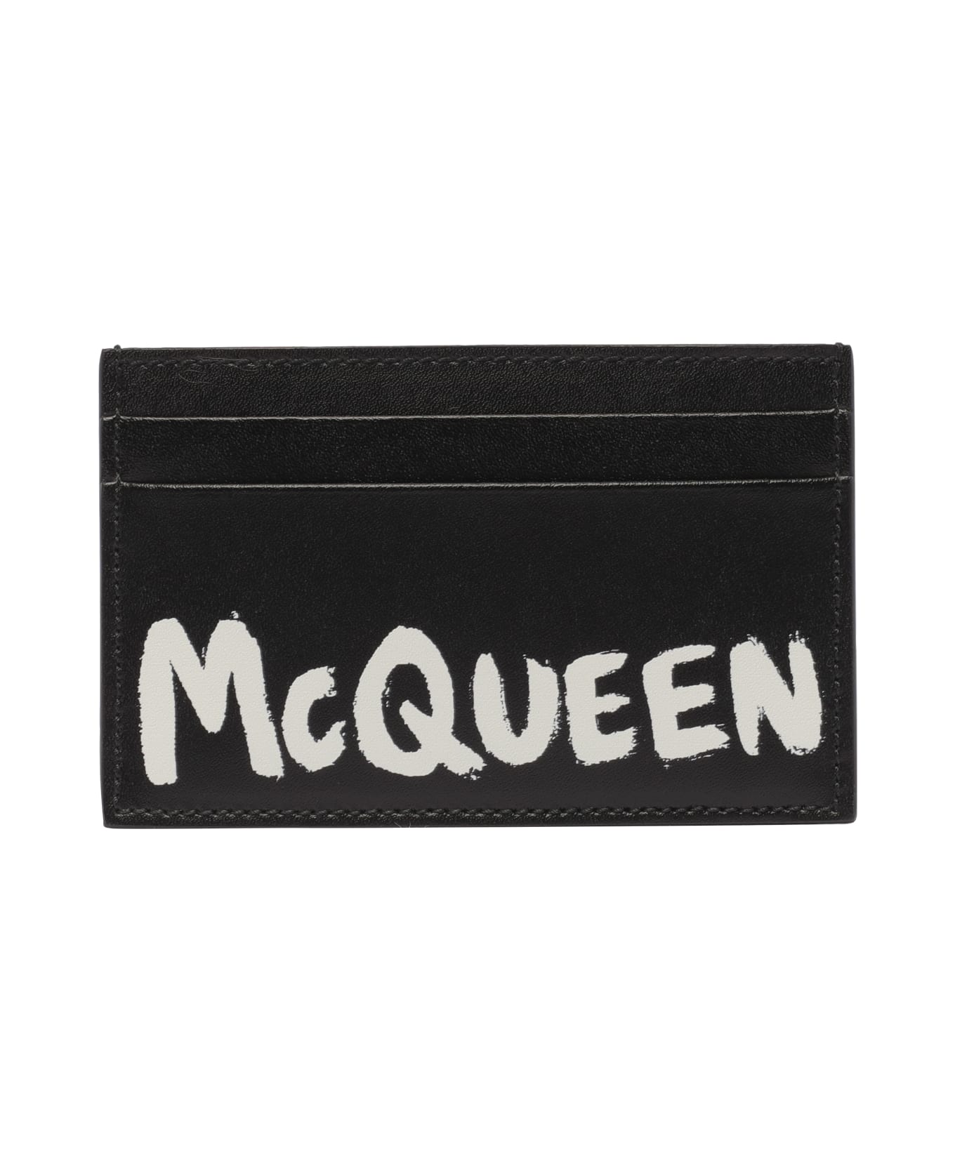 Alexander Mcqueen black Graffiri logo cards holder, 4 slots, frontal logo Composition: 100% Calf Leather
