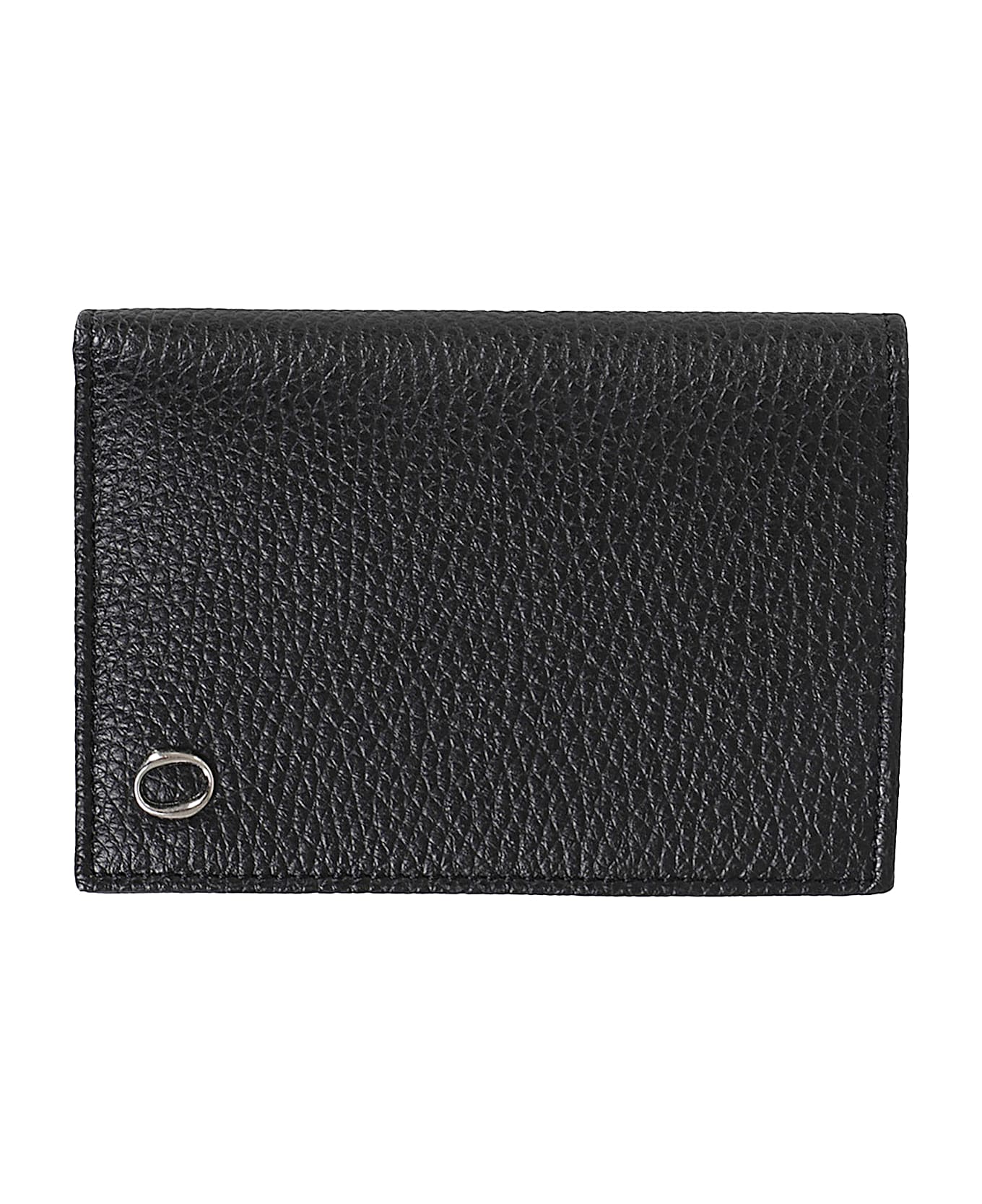 Micron Vertical Wallet - Orciani - Black color - Hammered leather workmanship - Booklet design - Inside pockets - Front metal logo applique - Size: 9 x 12 cm.