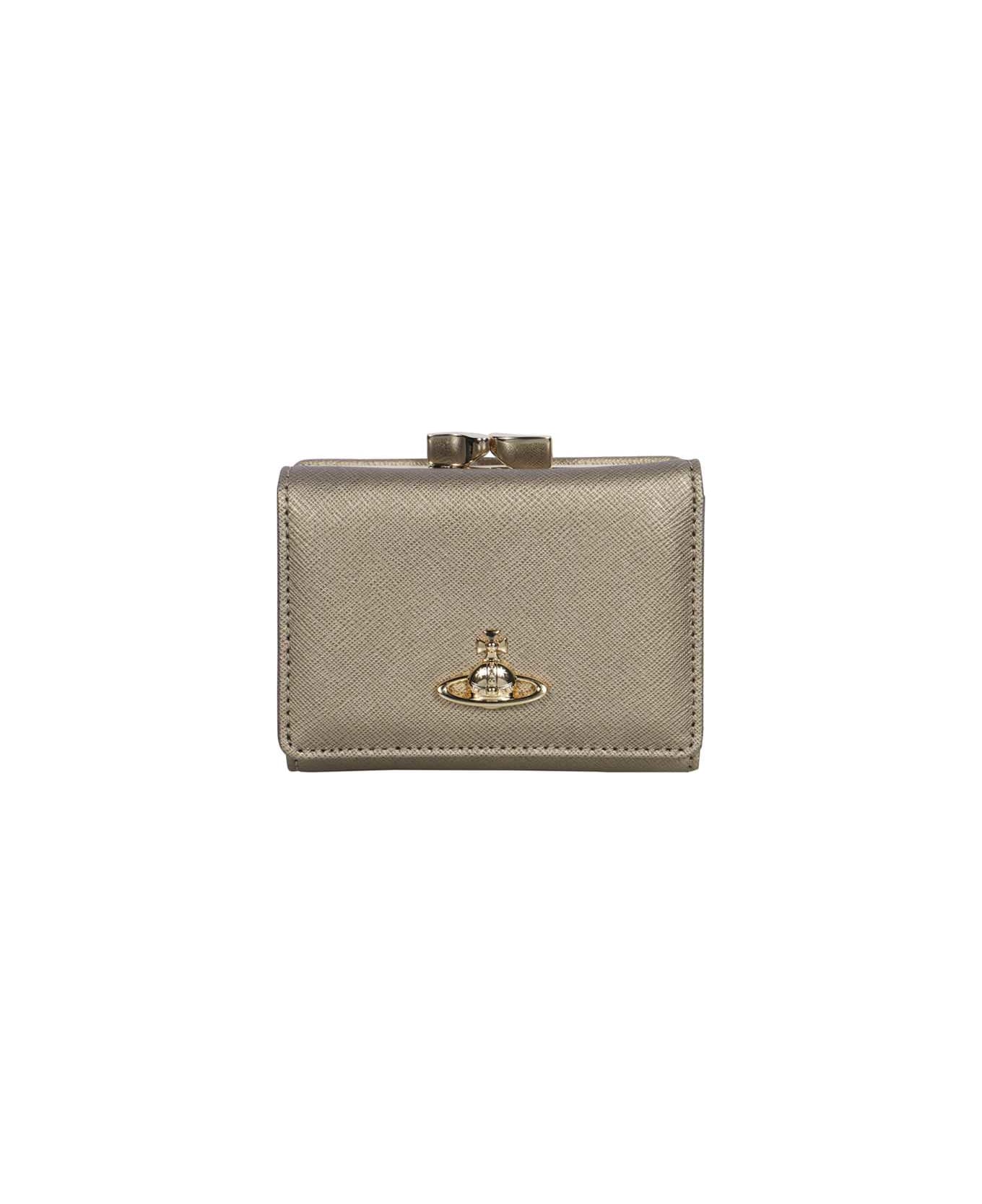 Metallic leather item snap button closure one bill pocket six card slots four flat pockets gold-tone metal hardware 100% cow hide Composition: 100% % Cow Hide