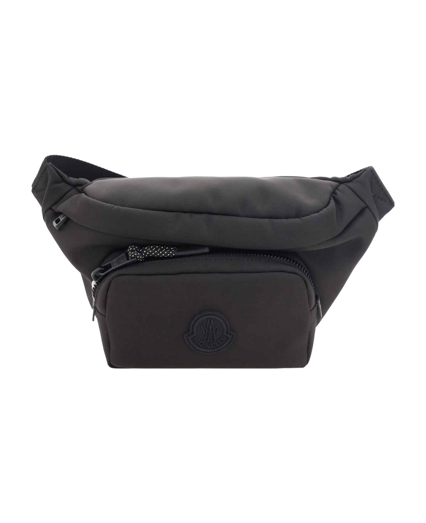 Durance fanny pack by moncler, front zip fastening, iconic brand logo embossed on the front, adjustable shoulder strap with clip, zipped pocket on the front, slit pocket on the back, single internal compartment.
