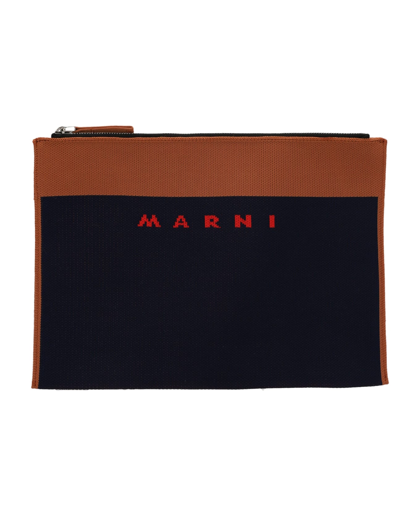 Colorblock fabric clutch bag with front jacquard logo and zip closure. Composition: 100% polyester