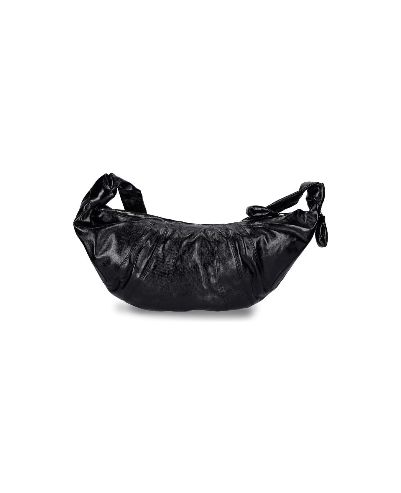 Lemaire 'Croissant' large crossbody bag in black coated cotton canvas with contrast stitching, zip closure, side zip pocket, main inner compartment, inner pouch included.