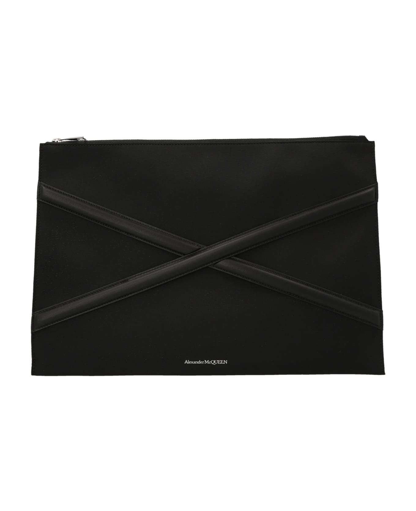 Harness' nylon clutch bag with leather details, zip closure and front logo print. Composition: 100% nylon
